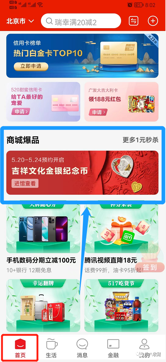 ②点击“生活—实物贵金属”即可开始抽签预约。