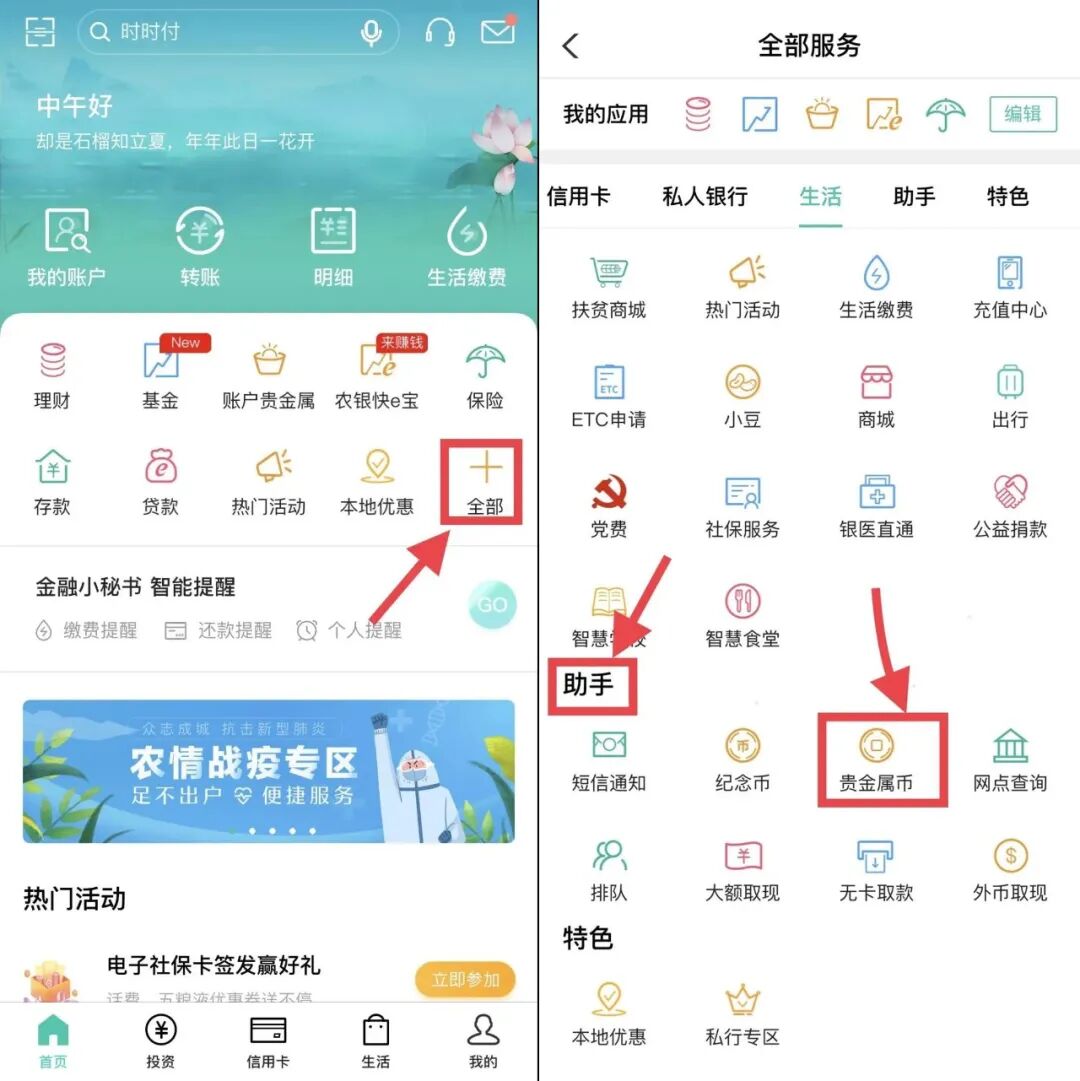 ②“首页—全部—助手—贵金属币”即可开始抽签预约。