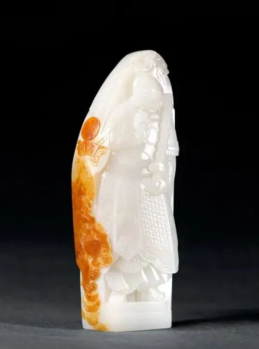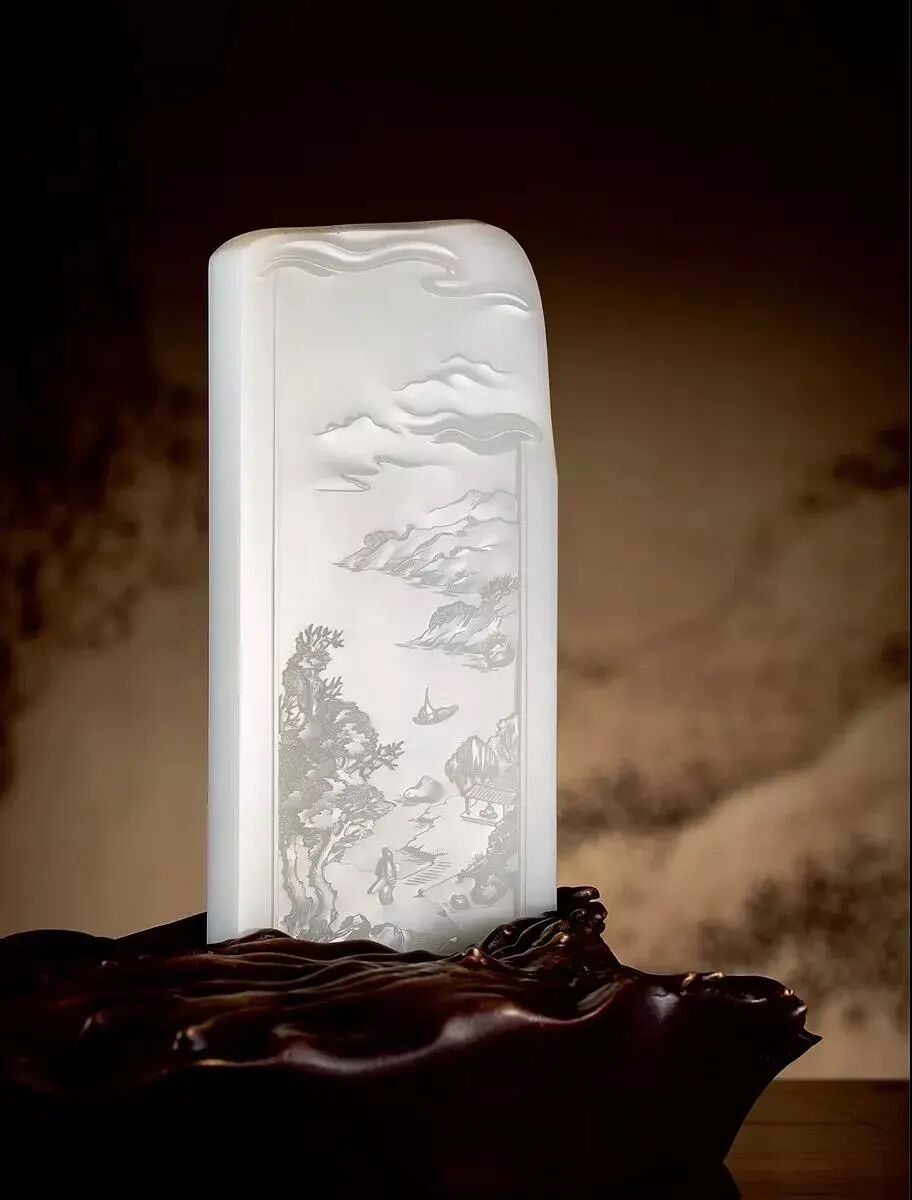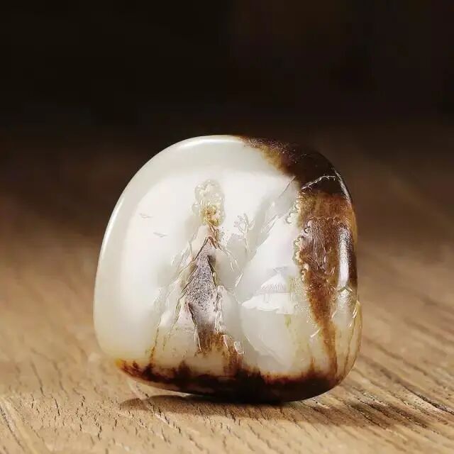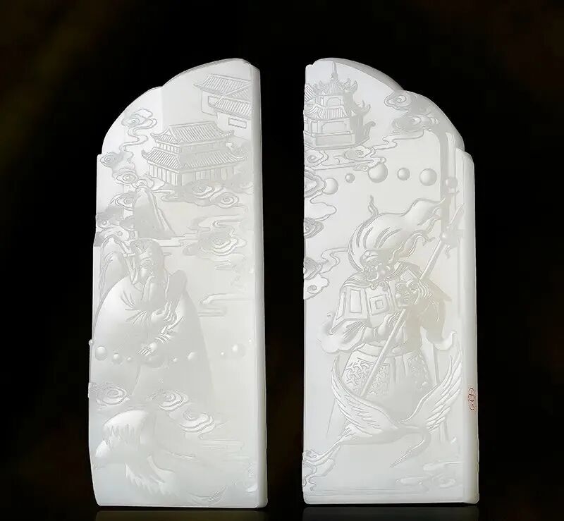 只有那些有比较严重的瑕疵或者裂纹的翡翠,才会用来做成雕花产品。如果一块翡翠雕有复杂的花纹图案,其美丽的花纹之下必有跷蹊。故而,翡翠业内流传有"无绺不遮花"的说法。所以,对于翡翠而言,不是雕刻得越复杂就越值钱。能够完美呈现翡翠玉石本身所具有的独特美感的,才是更有价值的。这件种水色俱佳的满绿翡翠无事牌确实美的不可方物,拍出如此高价诱人表示对品质的认可,也有不少表示了疑惑:为什么和田玉在拍卖场上却少有千万级别的。2011年,这套翟倚卫大师的“三顾茅庐”玉雕作品以1680万成交了,创下了当时的天价,即便是时至今天,也没有几块现代玉牌能超越这个价格。但拍卖的价格就是比不上翡翠!大家是不是也有这种疑惑呢?按理说,和田玉历史悠久,玉文化源远流长,对中华文化影响深远;而翡翠是清朝才开始流行的,至今也就400多年历史,但是却能后来者居上,这是为什么呢?“翩翩君子,温润如玉”。和田玉温润内敛,以其含蓄淡雅的气质征服人们的内心。翡翠的美更为张扬,质地晶莹剔透,光泽美艳水灵,光芒外露。翡翠颜色以透明、绿为贵。两者都是各自领域的佼佼者,和田玉就像是一位温润含蓄,收敛起才华的谦谦君子。而翡翠则更像是一位个性张扬、高冷贵气的美女。和田玉与翡翠两者在赋含的玉石文化上都是有很大的差异,和田玉在中国是家喻户晓的,但是就国际知名度来说翡翠认可度更广。