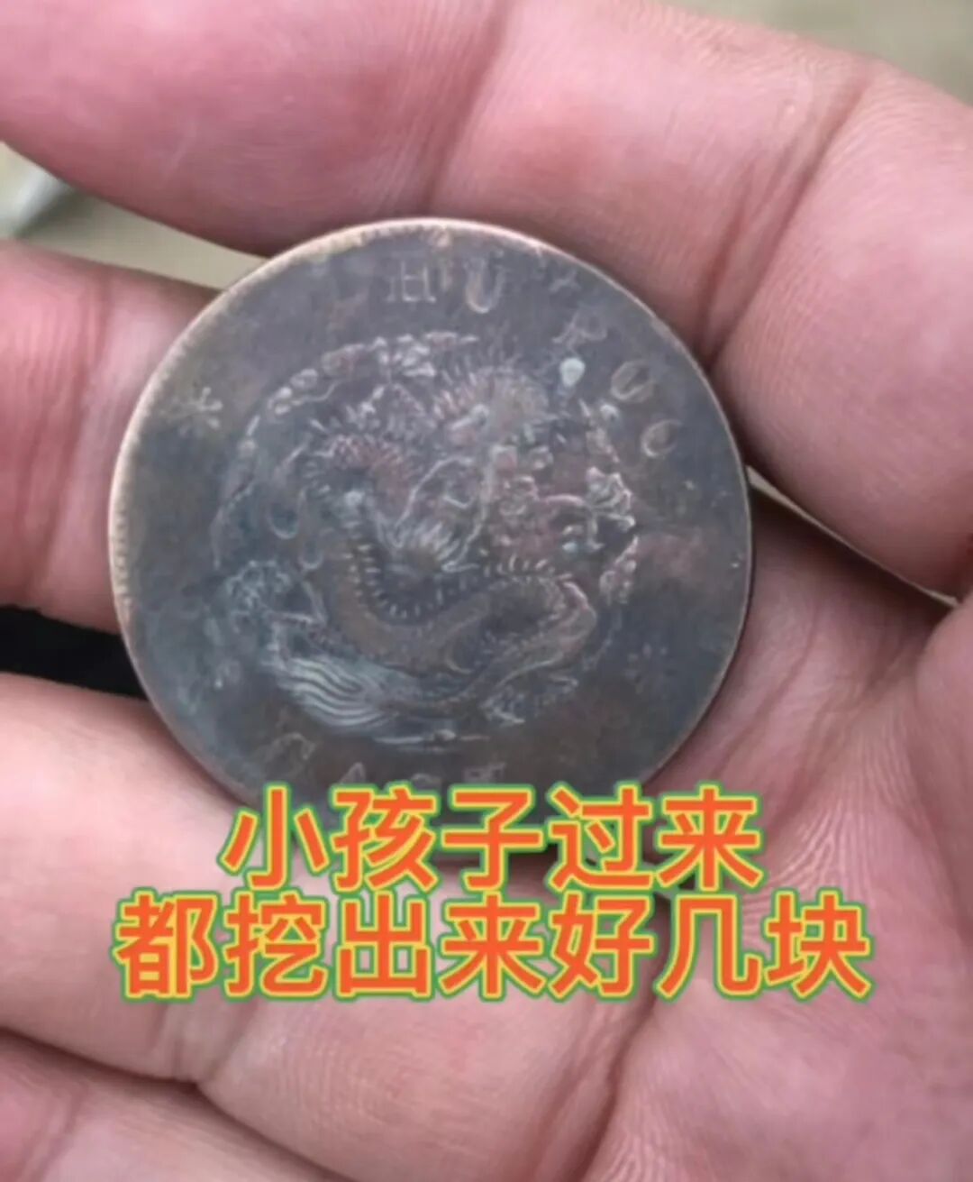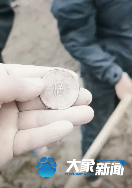 在河滩上有村民直接光脚在河滩上摸,也有村民用工具在土里挖。村民反映,有些挖出来的古币时间已久,表面已经被腐蚀,有些古币上还有“龙”形的刻印。
