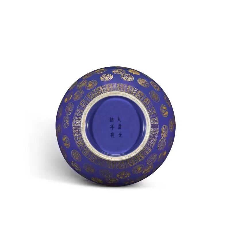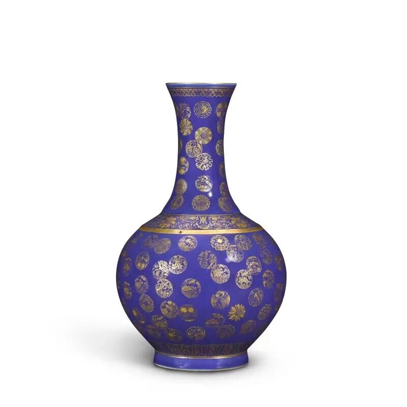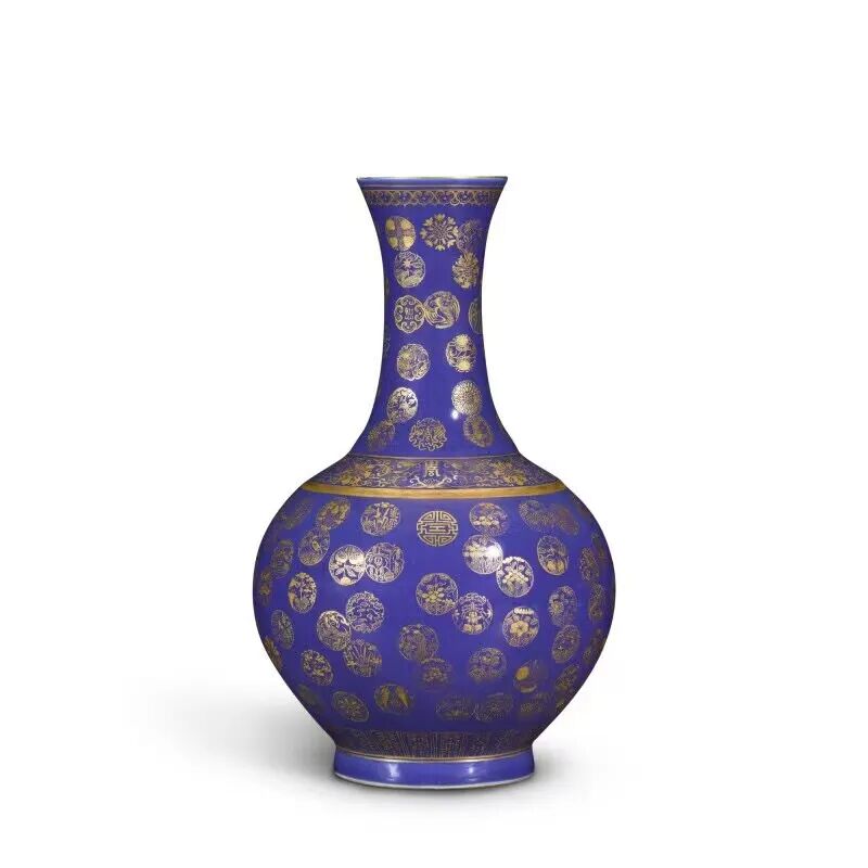 蓝釉描金团花纹赏瓶《大清道光年制》款