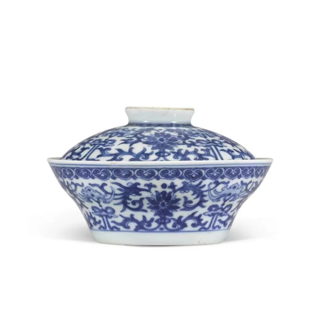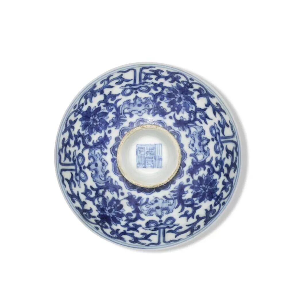 青花缠枝莲纹蓋盌 《大清嘉庆年制》款