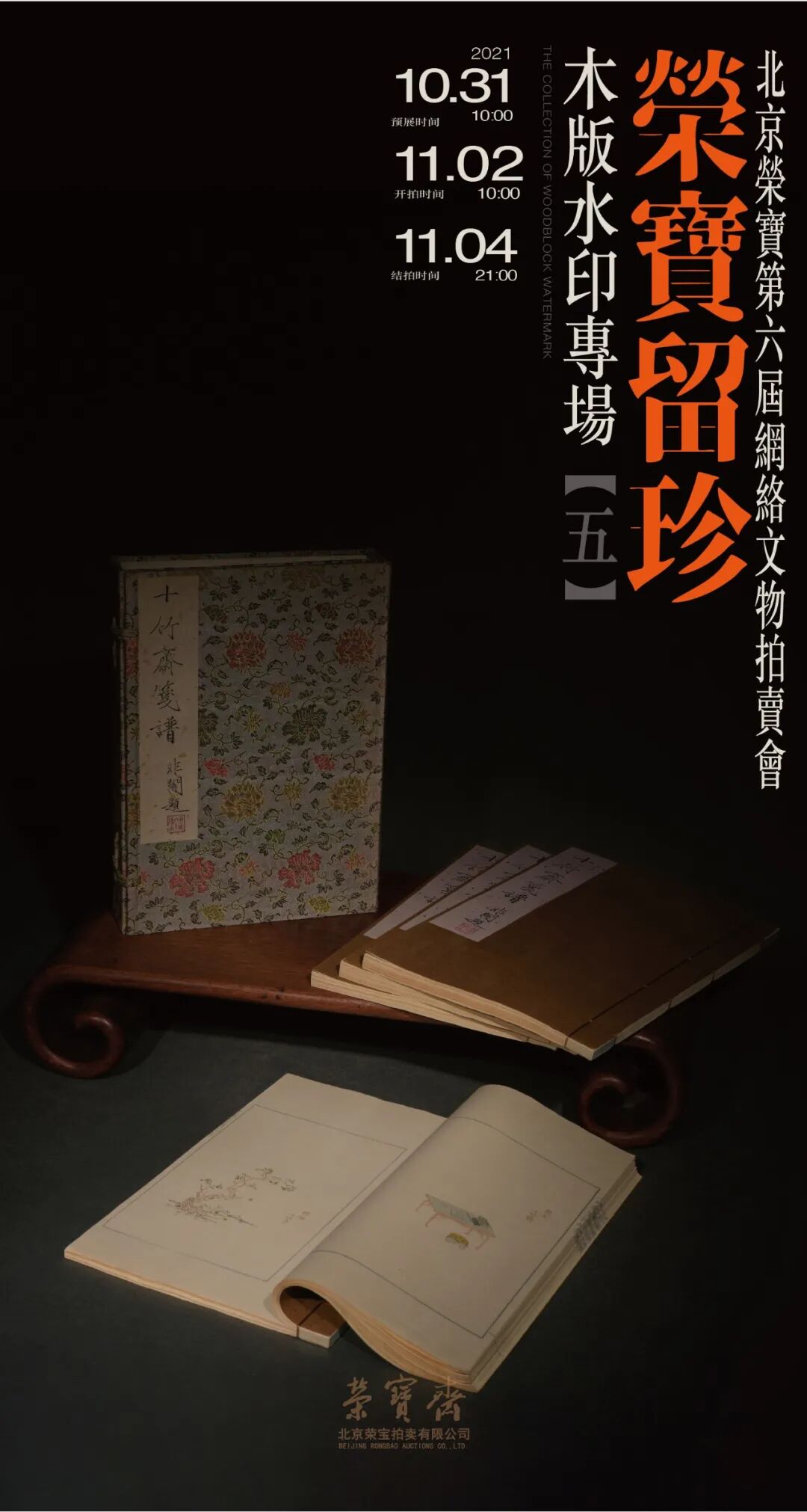 北京荣宝第六届网络文物拍卖会——荣宝留珍·木版水印专场(第五期)将于10月31日10:00—11月2日10:00开启线上预展,并于11月2日10:00开拍,11月4日21:00结拍。
