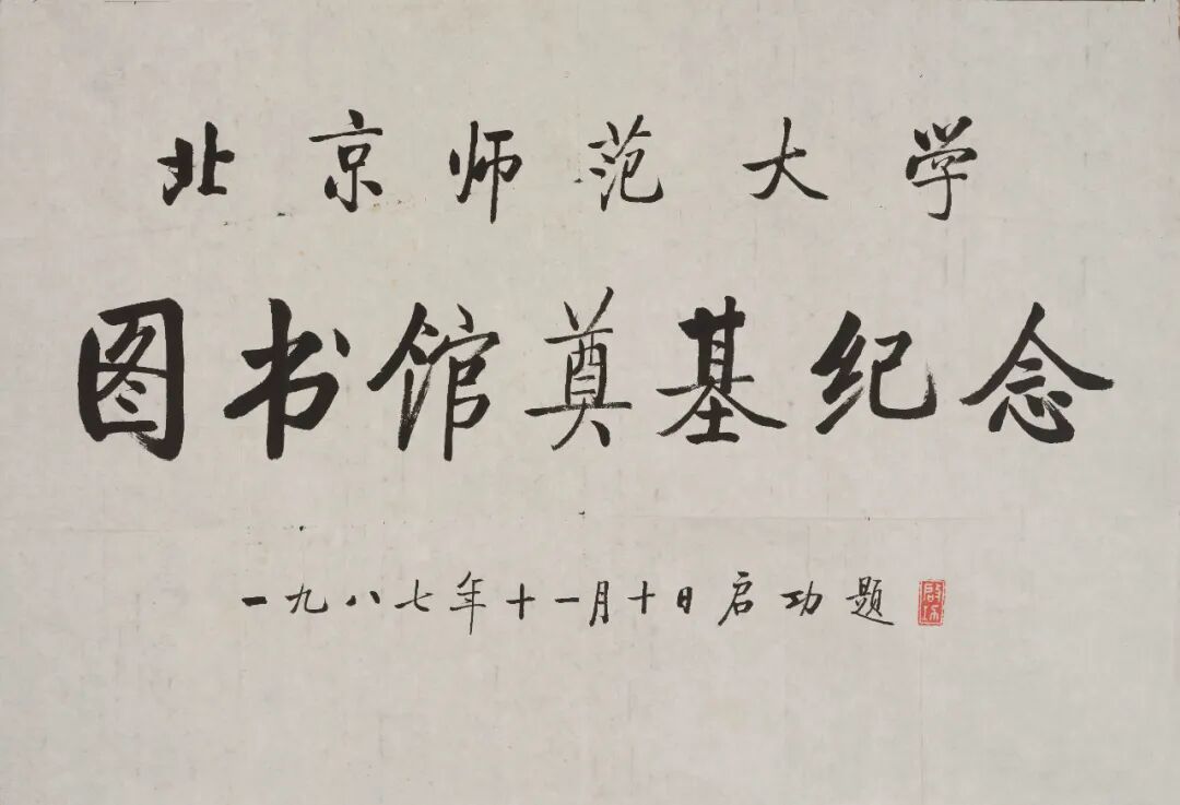 启功 (1912-2005) 楷书题“北京师范大学图书馆奠基纪念”