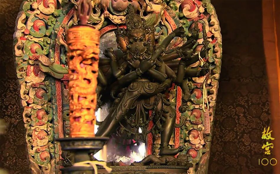 看到这件精美异常、雄浑有力的胜乐金刚像,令人立刻联想到故宫宝藏,在雨花阁第四层中龛所供奉的胜乐金刚,后者曾多有专著论及,并见于大型文物纪录片《故宫100》中1,为世人所熟知。但是比较之下,立刻可以看出无论在尺寸规格、艺术水准和工艺难度上,雨花阁造像都无法与此尊造像相比。这不禁令人思索:如此重量级的宫廷重器,定然应该有着显赫的出身,那么浩瀚的史籍中是否有它的蛛丝马迹呢?