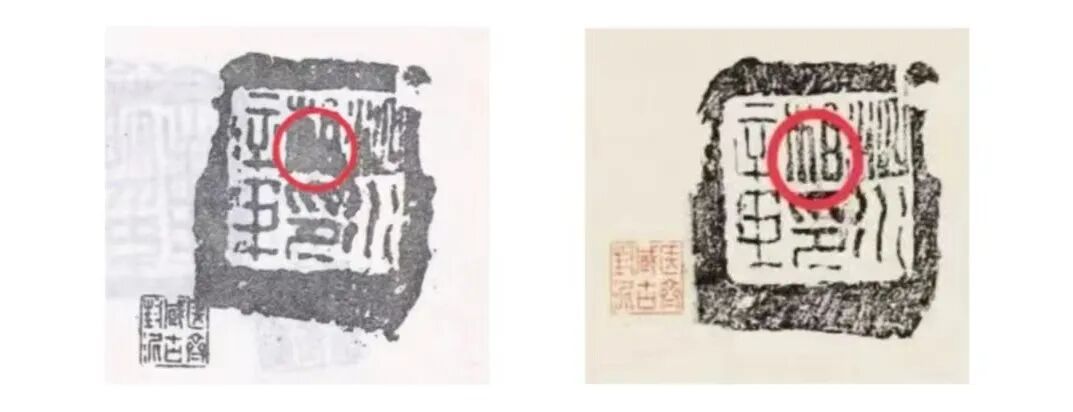 石印本,细节缺失严重。原拓本,细节丰富,印蜕清晰。