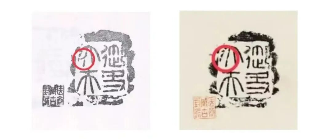 上图左边是选自于存世的晚清最重要的封泥研究著作《封泥考略》,该书虽然收录了部分陈介祺收藏和考释的封泥,但其使用的是石印本,因此封泥图像的细节损失较严重。
