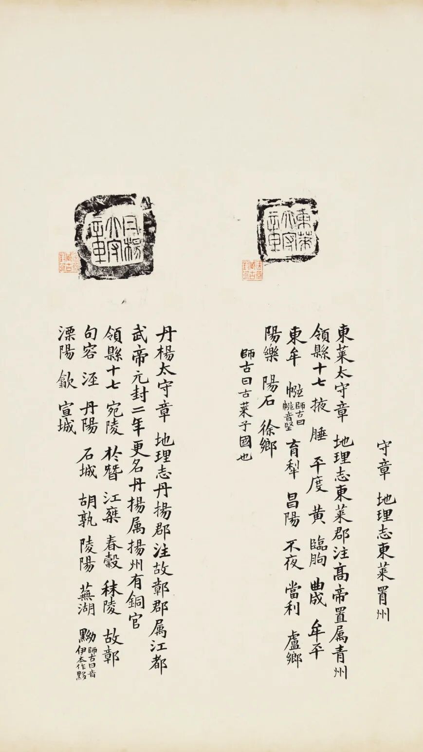 (左图)琅邪太守章。《地理志·瑯琊郡》注:秦置。莽曰填夷。屬徐州。有鐵官。領縣五十一:東武、不其、海曲、贛榆、朱虚、諸、梧成、靈門、姑幕、虚水、臨原、琅邪、祓、櫃、缾、邞師古曰:音夫,又音扶、雩叚、黔陬、雲、計斤、稻、皋虞、平昌,長廣、横、東莞、魏其、昌、兹鄉、箕、椑應劭曰:音裨、高廣、高鄉、柔、即來、麗、武鄉、伊鄉、新山、高陽、昆山、參封、折泉、博石、房山、慎鄉、駟望、安丘、高陵、臨安、石山。
