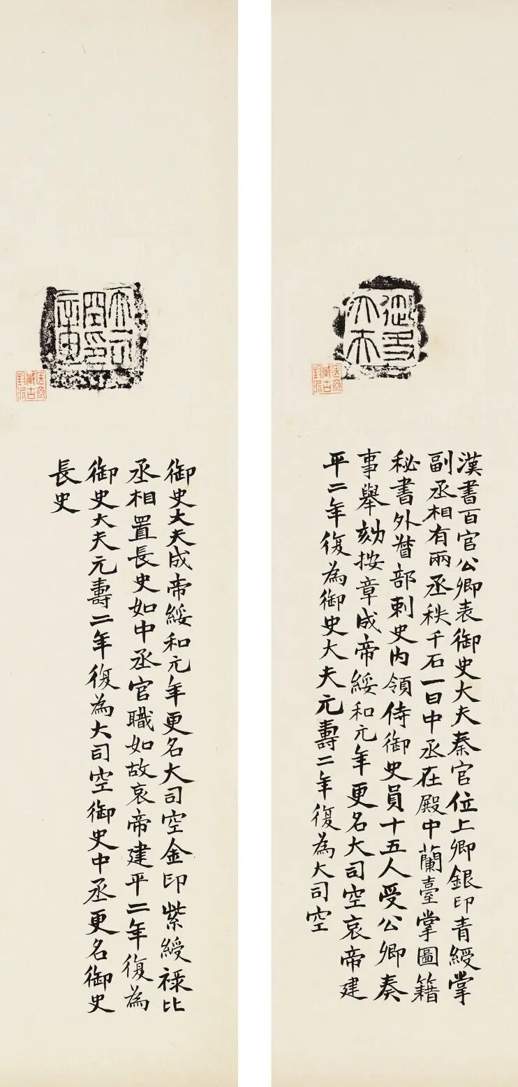 (右图)《漢書·百官公卿表》:御史大夫,秦官,位上卿,銀印青綬,掌副丞相。有兩丞,秩千石。一曰中丞,在殿中蘭臺,掌圖籍秘書,外督部刺史,内領侍御史員十五人,受公卿奏事,舉劾按章。成帝綏和元年更名大司空。哀帝建平二年復爲御史大夫。元壽二年復爲大司空。