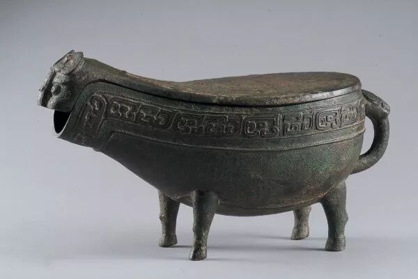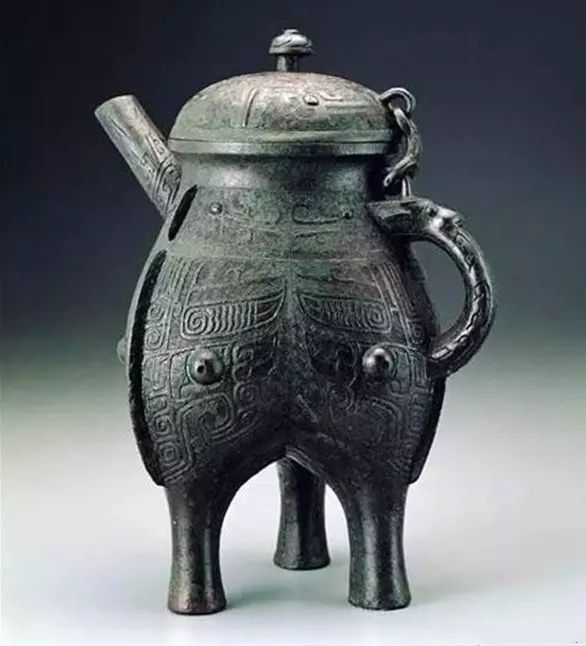 古代炊器,三个空心足,有柄喙,主要当作斟酒器,后亦有温酒功用。《说文解字》段玉裁注:“有柄可持,有喙可写物。”