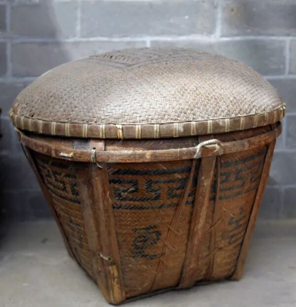 竹子或柳条等编的盛东西的器具,方曰筐,圆曰筥。唐·杜甫《过客相寻》:“挂壁移筐果,呼儿问煮鱼。”
