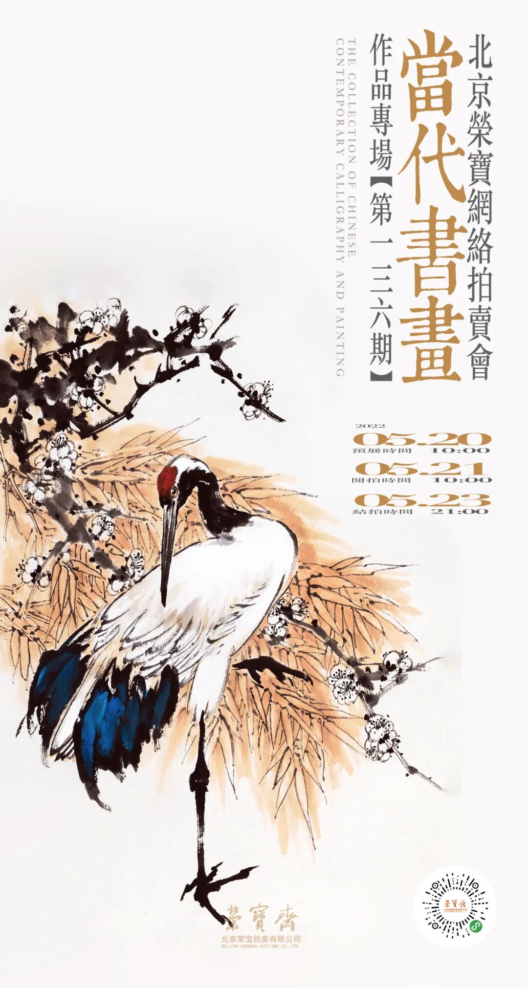 北京荣宝·当代书画作品专场网络拍卖会(第一三六期)将于5月20日10:00—5月21日10:00开启线上预展,并于5月21日10:00开拍,5月23日21:00结拍。