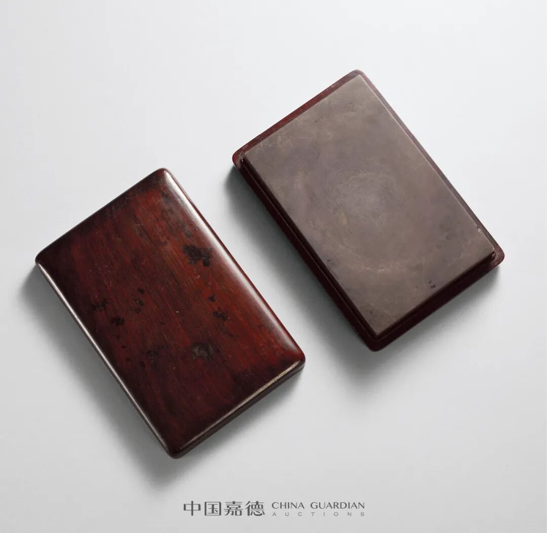 题跋开篇引用《端溪砚史》作者吴兰修言,谈鱼脑冻、青花火捺等石品。又言砚堂胭脂红高眼一枚,引东坡涵星砚以证眼贵。最后记述蓝老赠砚,以及回馈始末,并题砚铭。自题自注,杨氏惜砚之情怀,由此可见一斑。Lot 3141