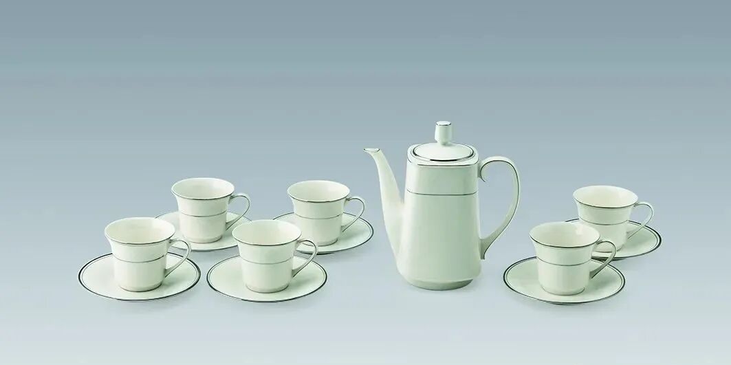 2017年北京“一带一路”国际合作峰会雁栖岛国际会议中心主会场“集贤厅”圆桌会议用瓷—“集贤瓷”茶具水杯与浓咖啡组合套具,我任总设计师。