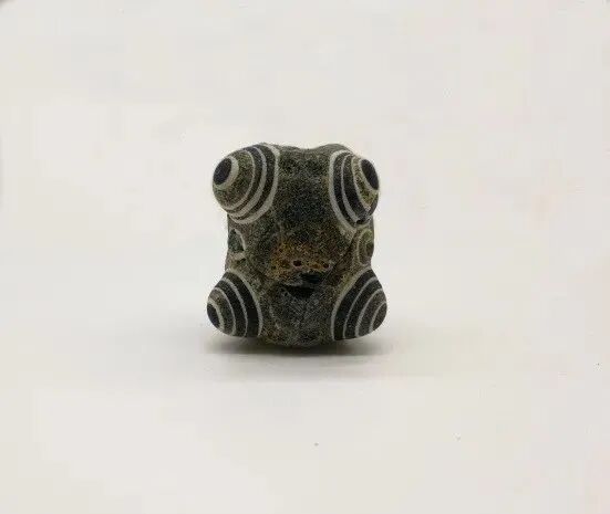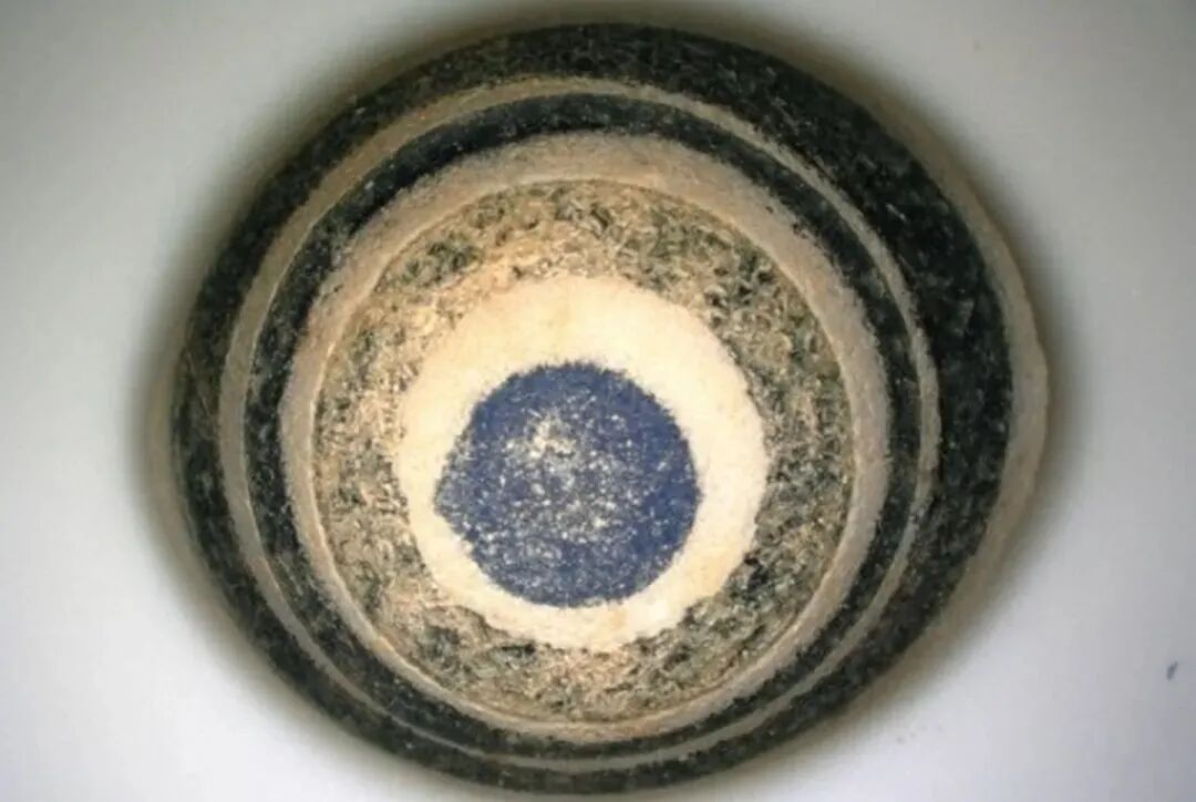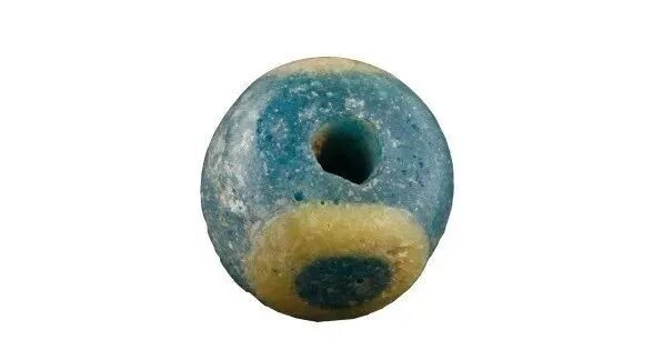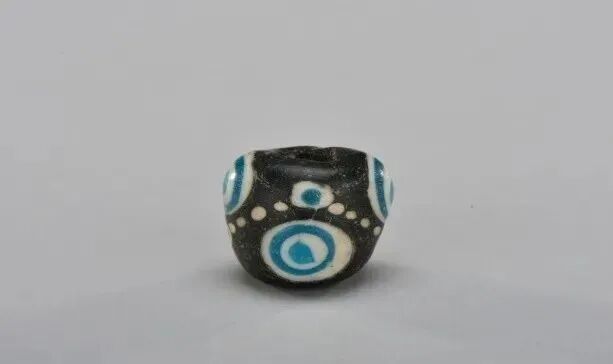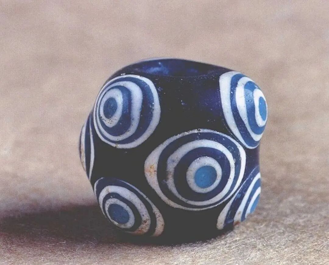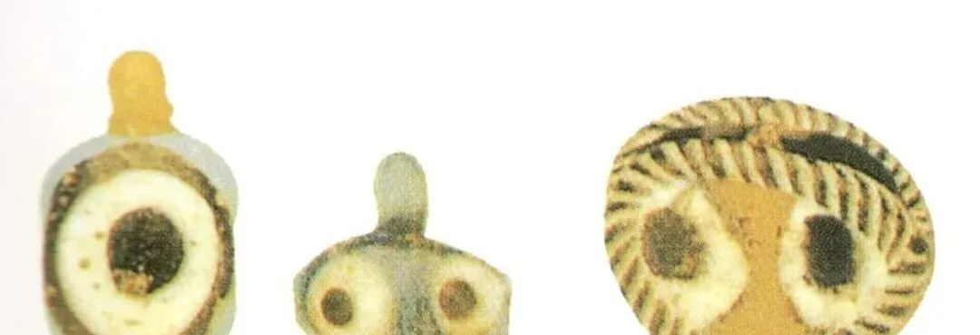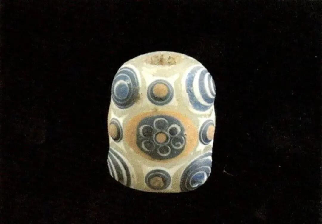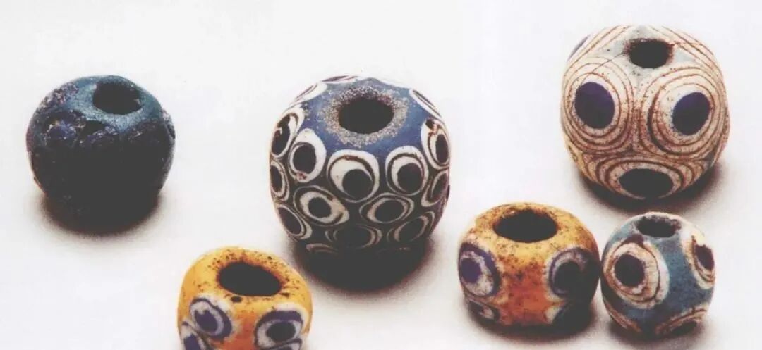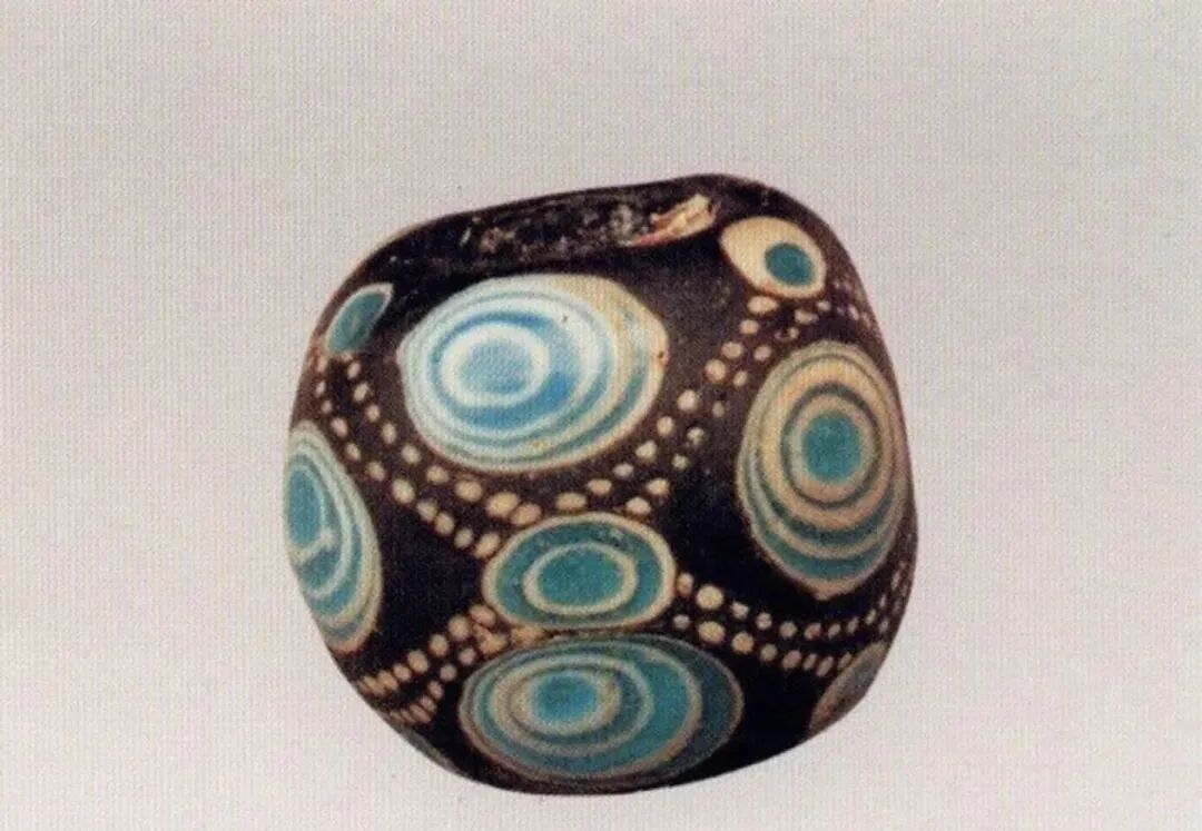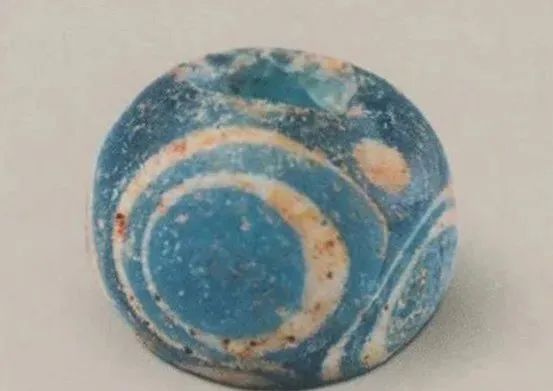 蜻蜓眼式玻璃珠大多以蓝色为基础色,辅以白边勾勒出“眼睛”,形成海天一色的神秘形象。
