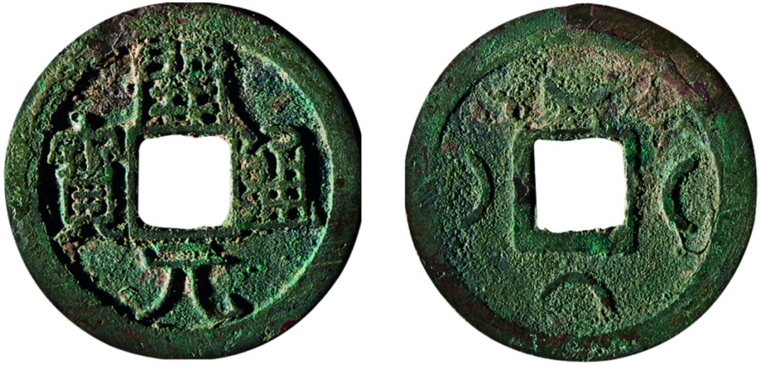 唐代“开元通宝”背上月银质小平,直径25.5mm,较少见,美品五代十国 南唐开元通宝背左月右星,直径26mm,少见,美品RMB60,000-80,000(成交价190400)五代十国开元通宝背上月孕星,直径43mm,是品“开元通宝”铜质大钱,其形制浑朴,钱文书体介于真隶之间,拙中见巧,又以“开”字关门为闽铸特征;其背穿上有月孕星纹饰,为谱外之版,闽铸铜质大开元因其存世盖寡,历来为泉家所重,是古钱币珍品之一,极美品,难得相关链接:五代十国时期王审知据闽时所铸。据史料载:王审知,光州固始人,唐末随其兄王潮起兵,入据福建。唐昭宗任命王潮为福州节度使,王潮死后,王审知代兄继立,尽有福建之地;后梁开平三年(909年)被后梁太祖封为闽王。是时,北方战乱不止,福建偏安一隅。王审知出身贫寒,对民间疾苦深有体会,对唐末以来苛政与战乱带给民生的危害颇有认识。王审知据闽期间,抱定“保境安民”之国策,对外停息战争,奉后梁为正朔,称臣纳贡,拒绝称帝。对内注重改革唐末遗留之苛政弊端,倡导官廉刑明,节俭自处,并广纳贤士,兴办学校。同时采取劝农耕桑,轻徭薄赋,安抚流民,发展生产等措施。又利用福建濒海之优势,开辟港口,招徕海内外商贾,并免除繁重的商税,“尽去聚苛,纵其交易”,使商旅间相继往来,商业亦随之兴盛。为了更好的开展商贸活动,王审知又于后梁“龙德二年(922年),铸大铁钱以‘开元通宝’为文,仍以五百文为贯”。其钱背文多有星、月纹及“闽”字,以一当二或当前期所铸铅开元二十枚。是品“开元通宝”铜质大钱,系王审知未铸大铁钱之前物;其形制浑朴,钱文书体介于真隶之间,拙中见巧,又以“开”字关门为闽铸特征;其背穿上有月孕星纹饰,为谱外之版。闽铸铜质大开元因其存世盖寡,历来为泉家所重,是古钱币珍品之一。开元通宝镜钱及开元通宝折十大钱背仰月一组两枚(裂)开元通宝镜钱及开元通宝折十大钱背仰月一组两枚(裂),直径41.1mm,46.2mm,美品