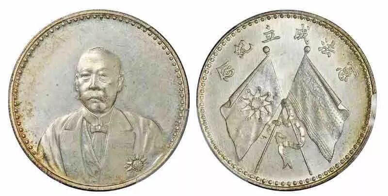 其中纪念金币正面为唐继尧头像图案,上书“军务院抚军长唐”;背面为交叉的九角十八星旗和五色旗图案,上书“拥护共和纪念银币”发行量都只有数百枚,均极为罕见。