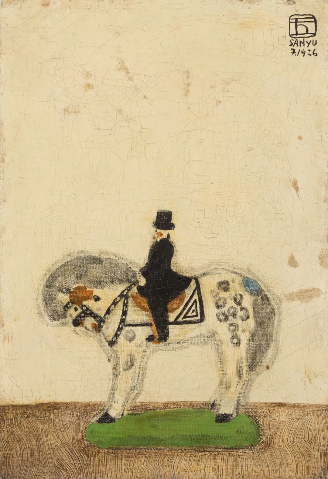 常玉《马背上的马戏团团长先生》布面油画,右上方有签名和日期