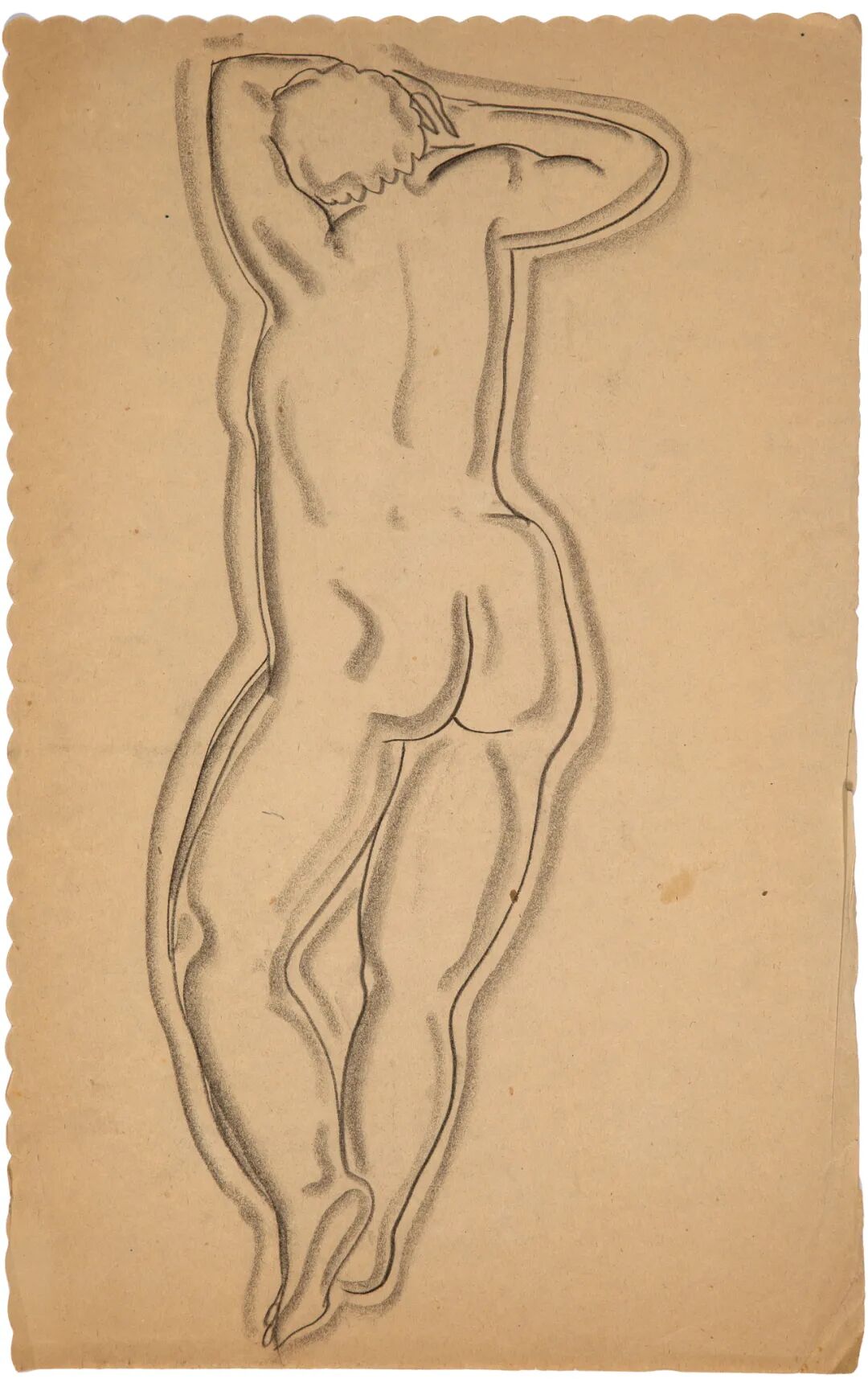 27.2 x 19 cm 1926年除两幅油画作品外,另有九幅常玉的纸本水墨及素描作品。随着常玉艺术的热度在收藏圈中持续发酵,其油画越来越有市无价,许多藏家的目标也就逐渐偏向水彩、素描甚至版画等纸本作品。本次这么多常玉作品同时出现在拍卖会上的情况实属罕见,众藏家一定不要错过!九幅纸本作品均是法国常玉藏家米歇尔·哈巴特的收藏,是常玉过世之时其工作室委托法国德鲁昂拍卖行的拍卖会中直接购入,本次由哈巴特后人委托奥古特进行拍卖。这系列纸本作品见证了常玉抵法后在巴黎著名大茅舍艺术学院进修时度过的岁月。