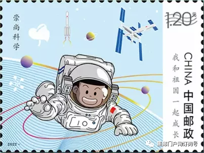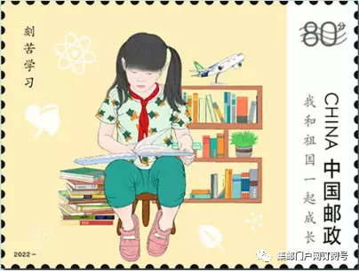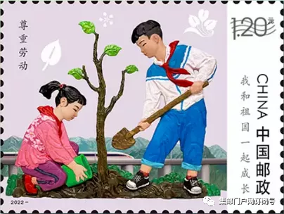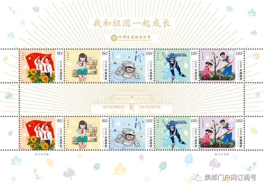中国邮政定于2022年6月1日发行《我和祖国一起成长》儿童节邮票全套5枚,整版2套邮票,集邮门户网看到中间以天安门为过桥邮票。邮票图案名称分别为:热爱祖国,刻苦学习,崇尚科学,强健体魄,尊重劳动,全套邮票面值为5.20元。面值为80分2枚、1.2元3枚。此邮票为纪念中国宋庆龄基金会成立40周年而发行。