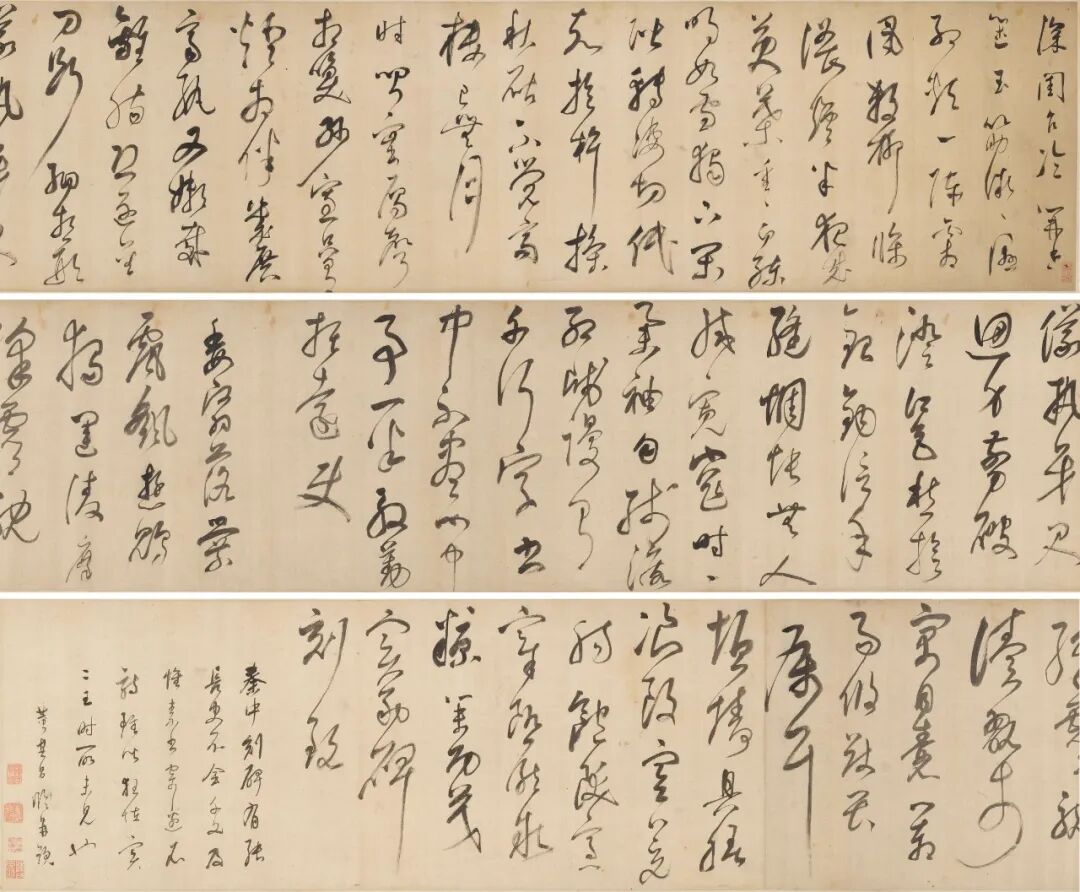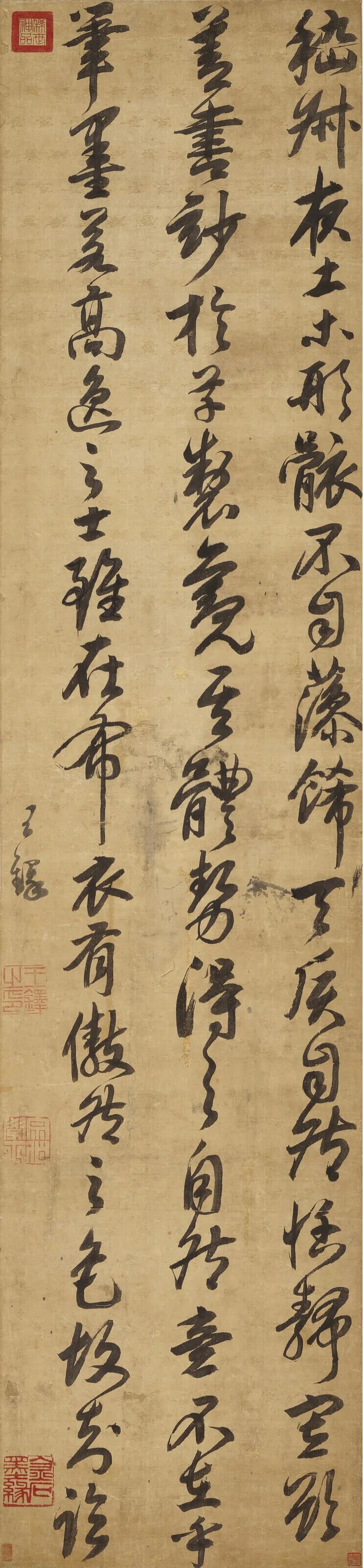释文:深闺乍冷开香箧,玉筋微微湿红颊。一阵霜风杀柳条,浓烟半夜成黄叶。重重白练明如雪,独下闲阶转凄切。低知抱杵操秋砧,不觉高楼已无月。时闻塞雁声相唤,纱窗只有灯相伴。几展齐纨又嫩裁,离肠恐逐金刀断。细想形仪执牙尺,回身剪破澄江色。愁捻银钩信手缝,惆怅无人试宽窄。时时举袖匀残泪,红笺漫有千行字。书中不尽心中事,一半殷勤托远使。委翳,落叶飘颻。游鵾独运,凌摩降霄。耽读翫市,寓目囊箱。易輶攸畏,属耳垣墙。具膳餐饭,空口充肠。饱厌烹宰,饥然糟糠。策功茂实,勒碑刻铭。