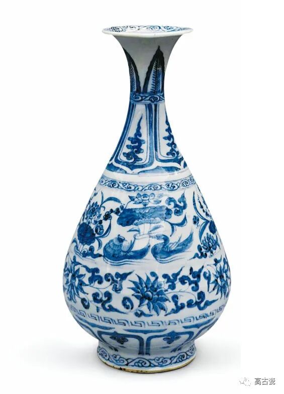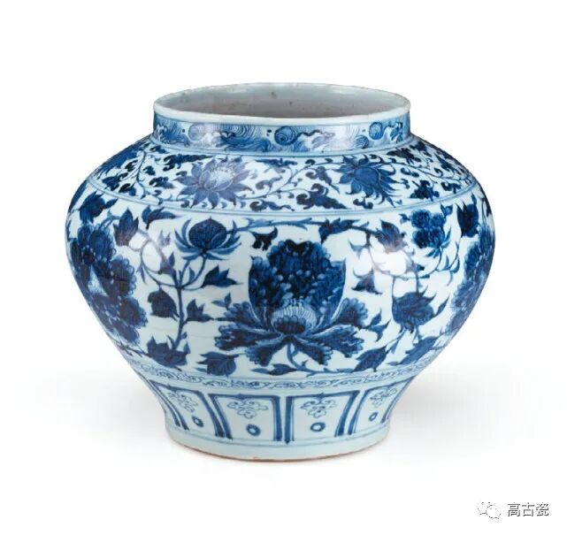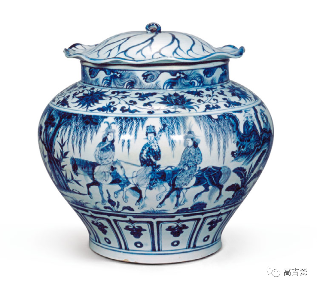 莲纹是元青花花卉图案中的又一重要题材,形式极为丰富,可以细分为缠枝莲纹、折枝莲纹、把莲纹、莲瓣纹、莲池纹等多种。