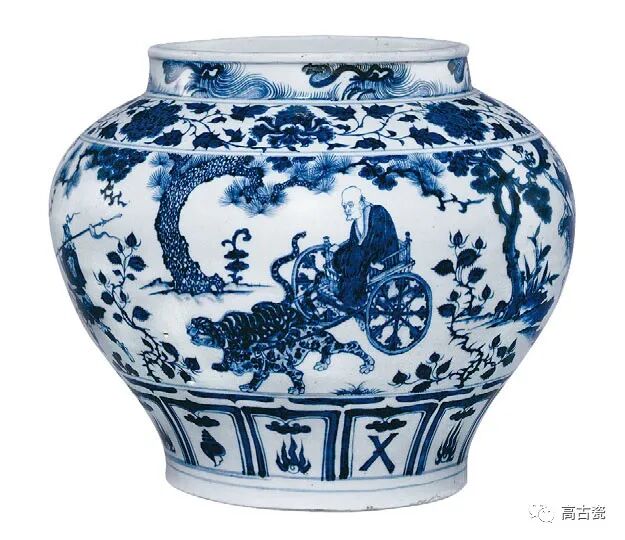 青花鬼谷子下山图罐