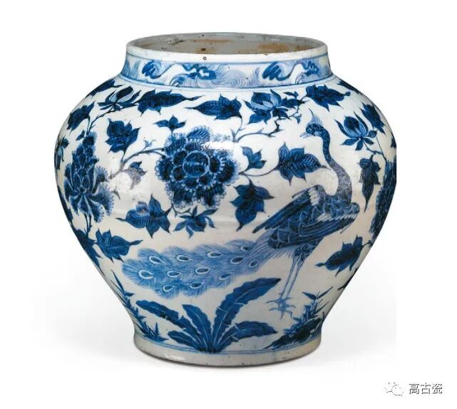 青花孔雀牡丹纹罐