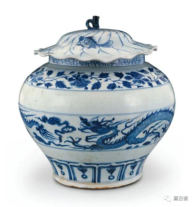 青花云龙纹荷叶盖罐