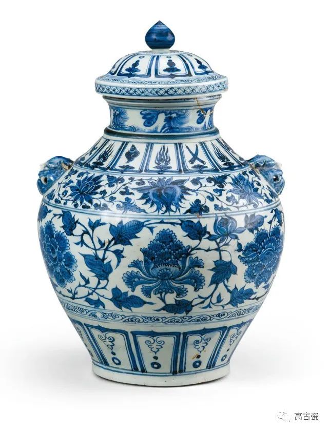 青花缠枝牡丹纹兽耳盖罐