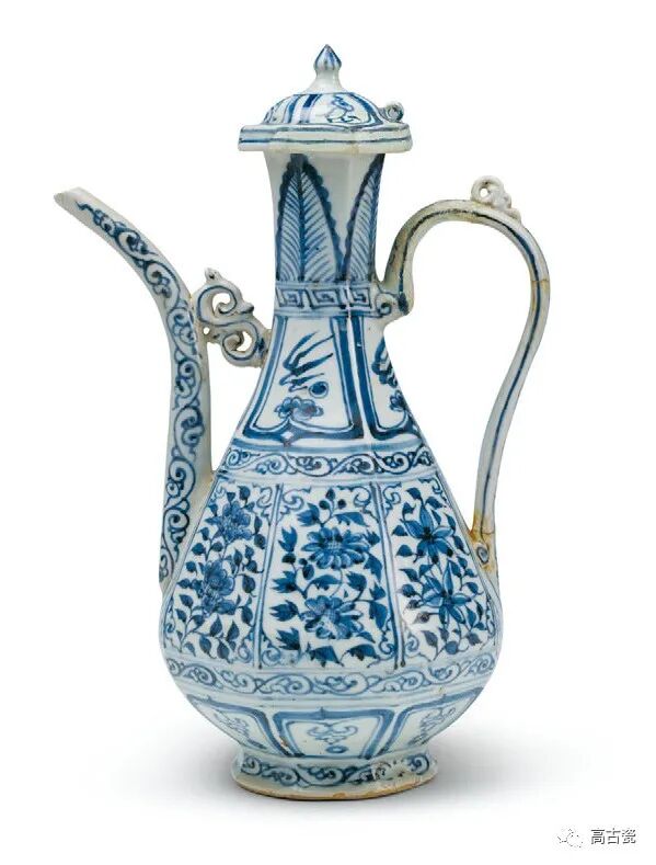 青花折枝花卉纹八棱执壶