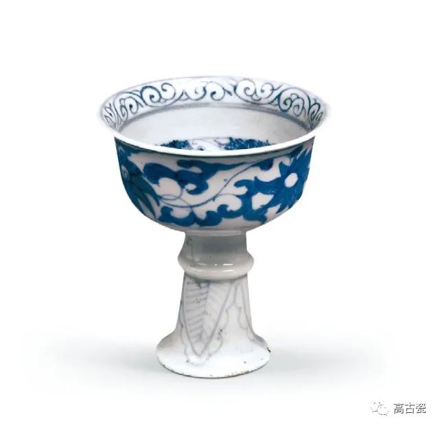 青花缠枝莲花鸳鸯纹高足碗