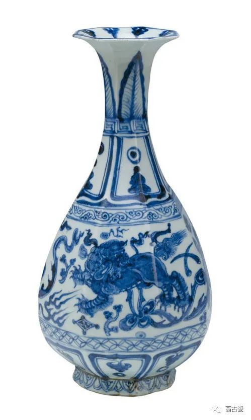 青花狮球纹八棱玉壶春瓶