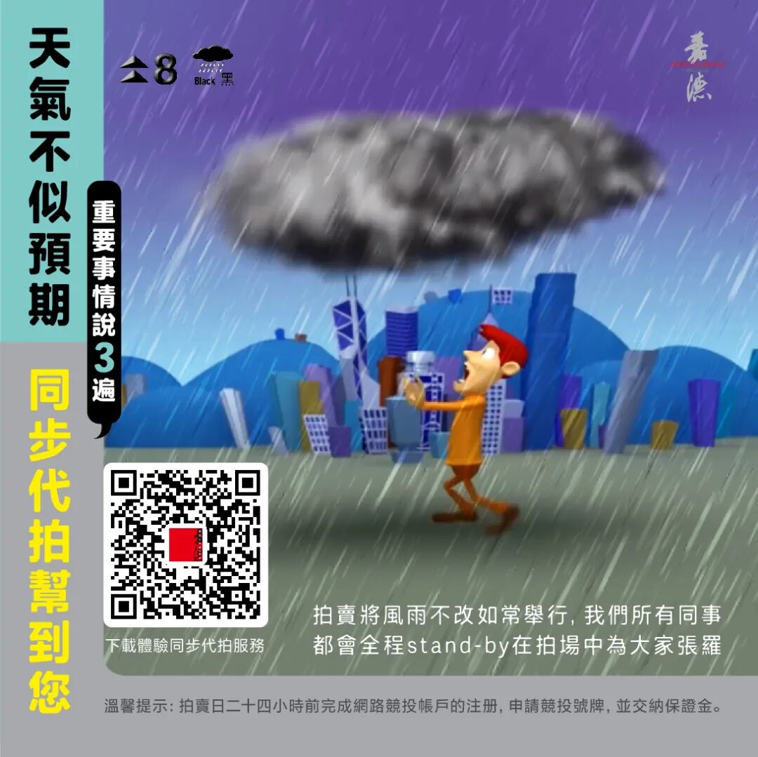 拍卖将风雨不改如常举行!纵身处恶劣天气,我们所有同事会全程stand-by在拍场中为大家张罗。