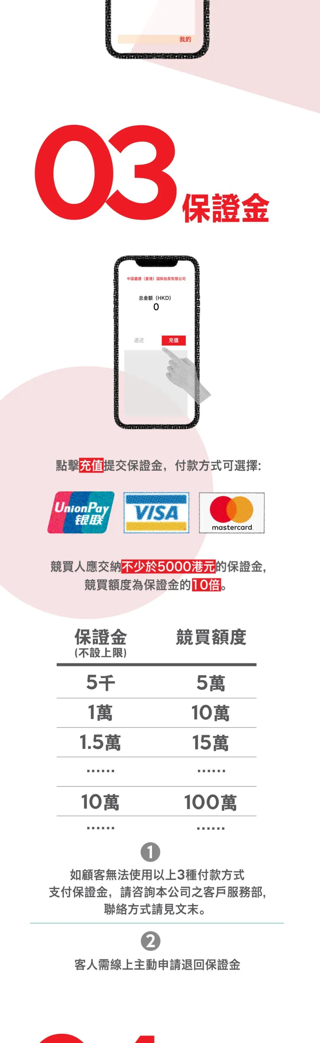 申请竞投号牌,并交纳保证金。