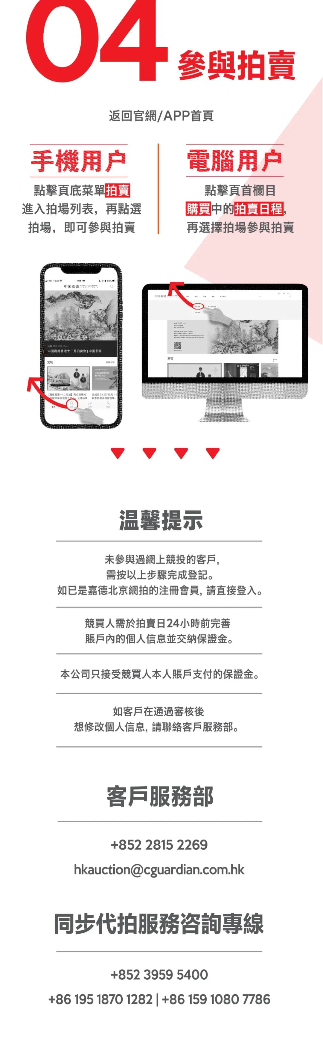我们亦特别推荐您使用同步代拍——只需简单的步骤,无论您身处在世界哪个角落,哪怕在“八号风球”的极端天气之中,都可以足不出户,一键竞投心头所好!