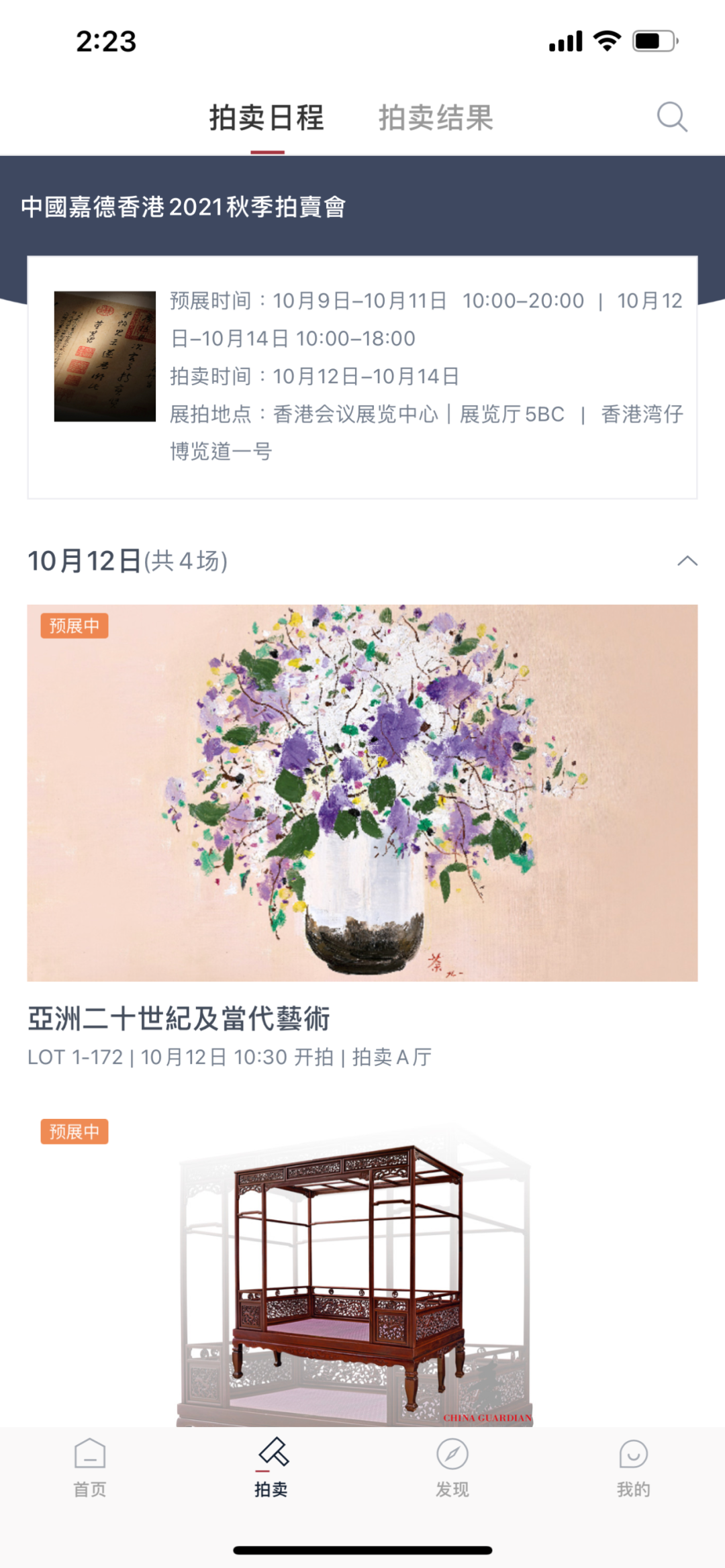 ArtPro APP将同步放送拍卖实况,可选择相应专场在线观看。