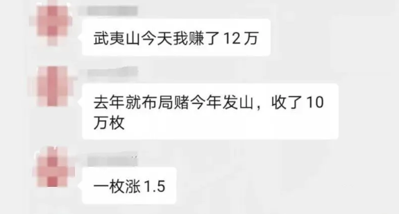 据说这位网友从去年就开始布局,收了10万枚武夷山纪念币。今年武夷山纪念币涨了后,转手就赚了12万。
