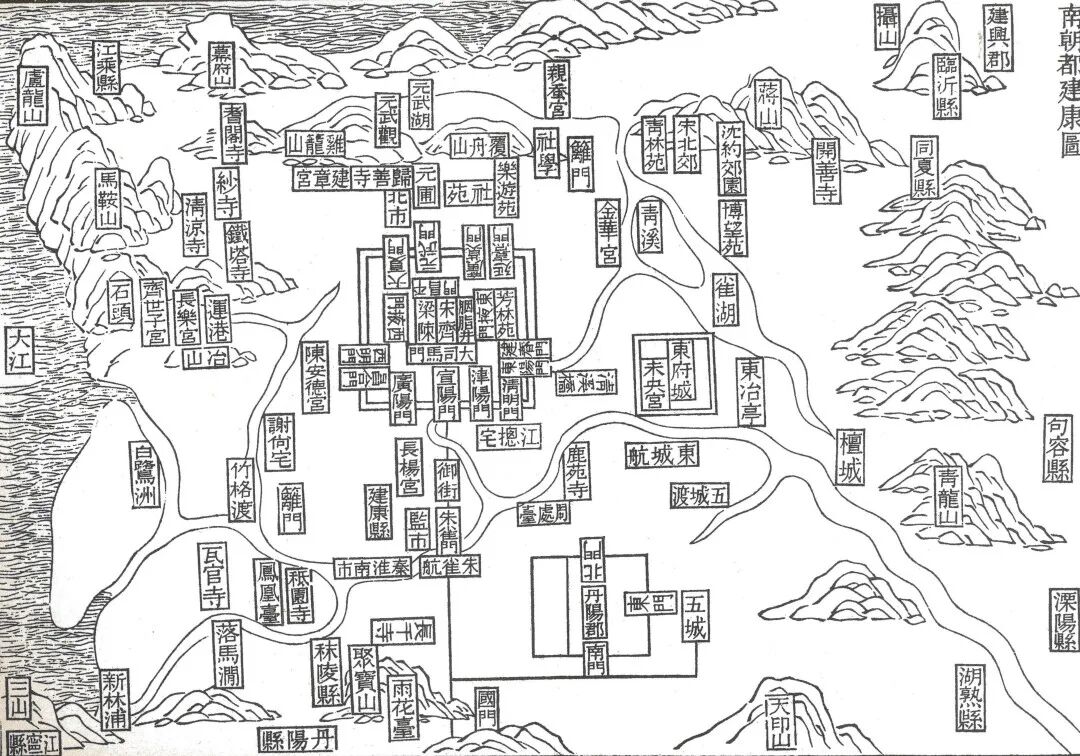 图二 南朝都建康图(图片来源于《金陵古今图考》)