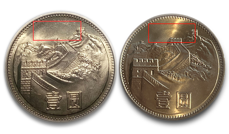 壹圆长城币分别由上海造币厂、沈阳造币厂铸造,生产周期跨度达5年之久, 所以产生了很多版别。