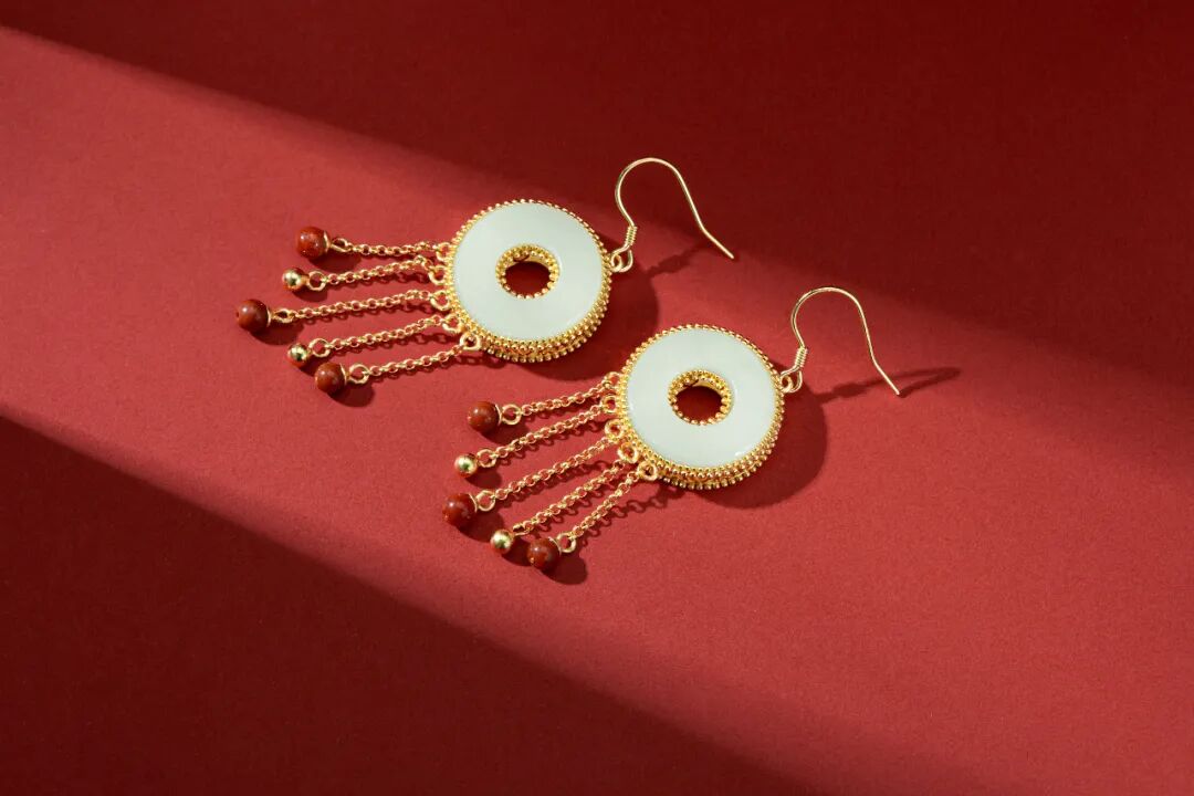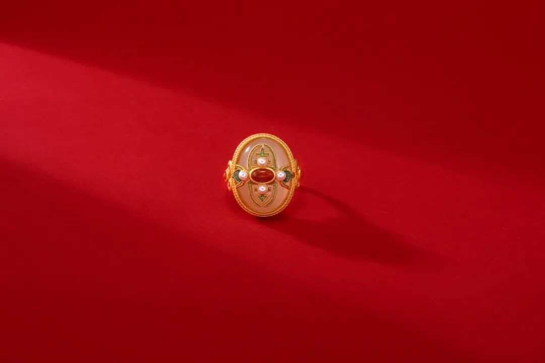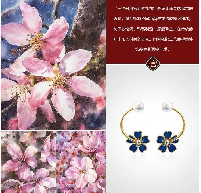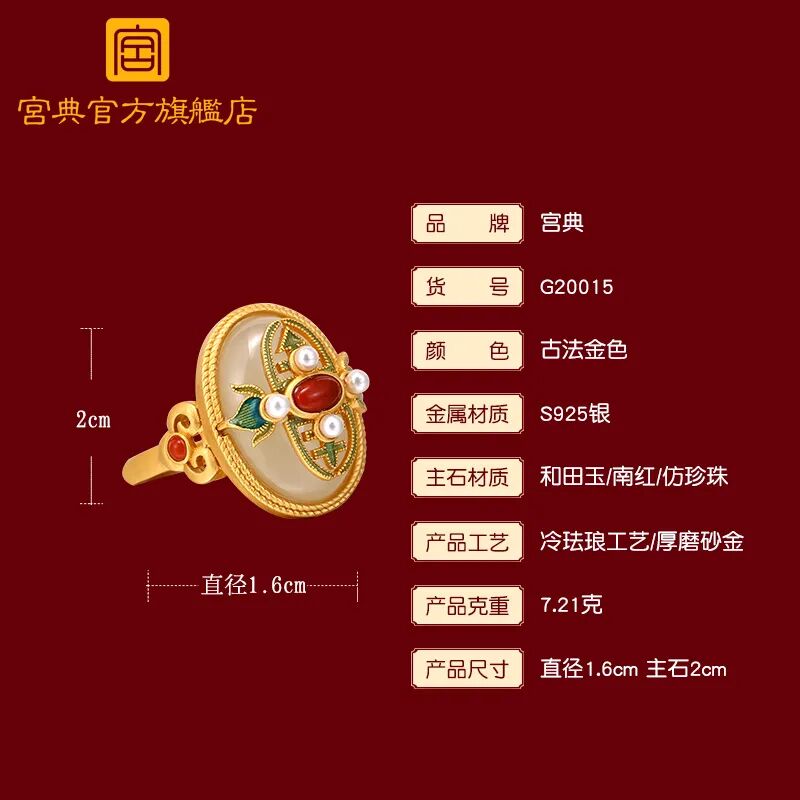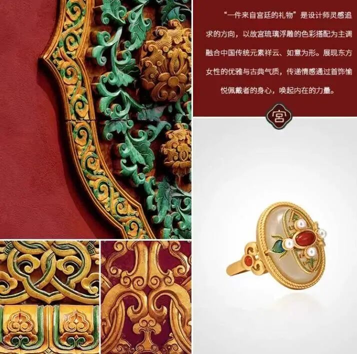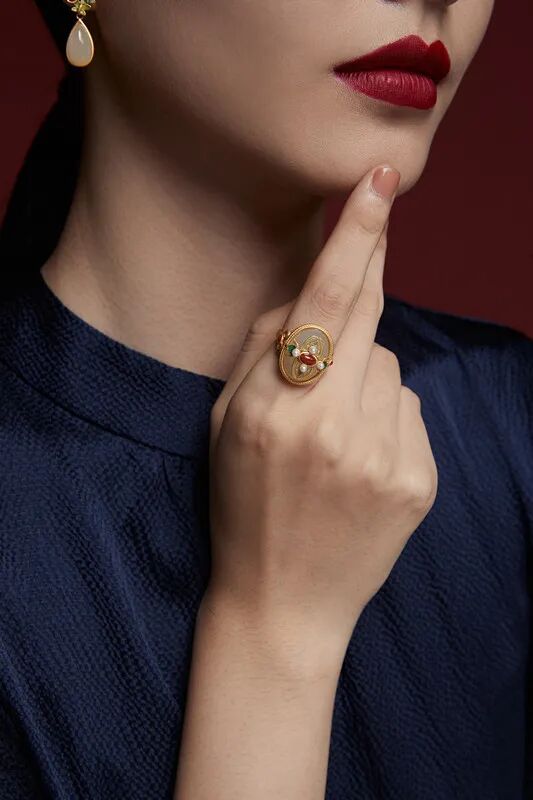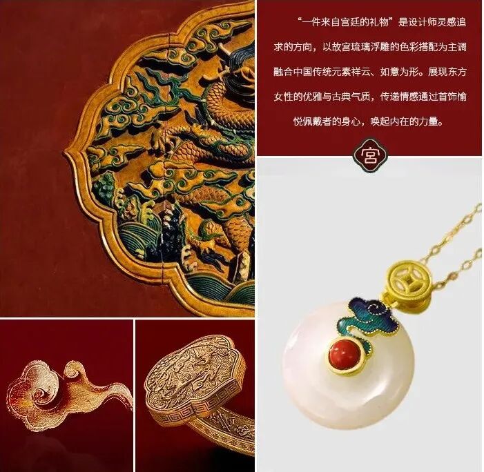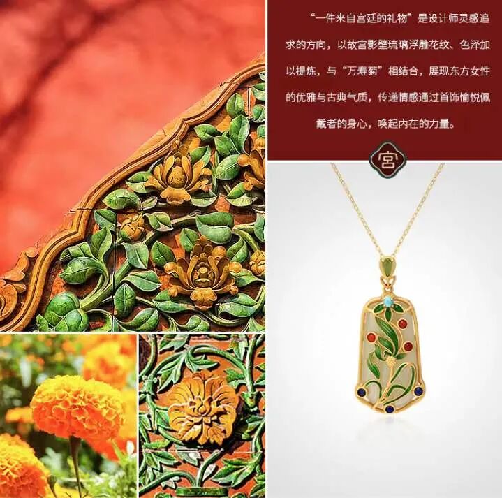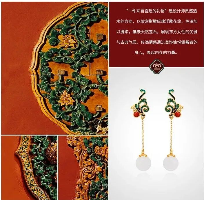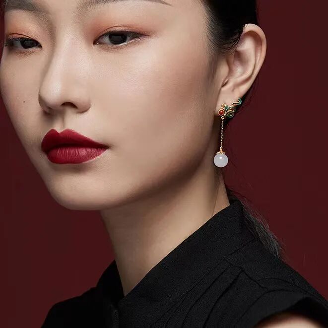 这条古法黄金珐琅吊坠,采用珐琅工艺,兼具玉的温润、珠宝的光辉、又有骨瓷的细致,号称是“比宝石更珍贵的工艺。”灵感来源于故宫影壁琉璃浮雕的花纹、色泽,将之与“万寿菊”相结合,设计出的白兰草造型逼真,姿态灵动,艳而不俗。底座是一整块和田玉,镶嵌的南红石、绿松石,就像白兰草的花朵与果实,雅致精巧又不失分量感和庄重感,很能压住场子。贵气不失雅秀,既有古典韵味又有现代的灵动,非常百搭,不管是时尚商务,还是国风礼服,都可以轻松驾驭。设计师提取紫禁城宫门上的如意云纹,以珐琅工艺点缀在平安扣形状的和田玉上,一抹玉色尽揽祥瑞。平安扣中心一颗南红珠子点缀,点亮中国绝色,新年就要带点红。上端一枚精巧的金铜币,绕于颈间,温婉大方,链接起一年的财气和平安,寓意美好。自古以来,玉就有“大地舍利”的美誉,古代女子尤其爱佩戴玉,像玉镯一直都是古典灵韵的象征,有一种让人难忘的美感。这款宫典玛瑙玉镯主体为通透水润的白色玛瑙,玉质温润,触之如婴儿肌肤;玉色和畅,观之如静雅美人。中间是厚磨砂金质地的如意锁,采用中国传统的吉祥纹饰,有祈求幸福的美好寓意。带着生生不息的生长之气,一眼难忘。除了上面的玉镯,宫典还有一款和田玉手链,也十分唯美。以多种不同的佛珠造型简化提炼,用14颗颜色深浅不一的和田玉珠串串联而成,如湖水般波光粼粼,又如雾中远山,空濛温润。中间搭配七宝之一蜜蜡,再缀以翠绿的如意锁,古法金流苏,寓意着平安如意。复古却不沉闷,戴着手上气质灵动,举手投足间都是东方女人特有的风雅,适合各个年龄段佩戴。中国风的耳坠最能体现“月移花影动”,一步一惊心的诗意和美感。浓郁而雅致的和田美玉,温润滋泽,细致光滑,将骨子里的淡雅与清丽显露无疑,色调稳重不张扬,令人深深沉醉其中。平安扣形状的和田玉,内外镶嵌浮雕,下面流苏缀以色泽饱满的南红宝石,寓意美好。整体造型感十足,像精致的小乐鼓,走路时仿佛踩在鼓点上,叮叮咚咚,清脆悦耳,为佩戴者平添一丝灵动仙美。制作工艺更是运用到古法厚磨砂金工艺。这种工艺需要采用纯手工对黄金进行精雕细琢,过程十分繁琐,包括搂胎、锤揲、修金、花丝、錾刻、镶嵌、修金、打磨等等。制作时间是普通黄金饰品的几倍甚至几十倍,更添一份珍惜。自带哑光效果,“色泽温润,华而不炫,贵而不显”。从视觉上看起来质感更好,更有档次;佩戴时,也更能展现出其厚重的分量,庄雅大气。这也是一款令人惊艳的耳饰,灵感设计也来源于故宫影壁琉璃浮雕。石青色的浮雕花纹,金黄色描边,镶嵌砖红色天然南红石耳钉,造型灵动绝美,仙气飘飘。下面缀以晶莹的天然和田玉,精致典雅,像青翠山林间的晨起露珠,闪烁着熠熠光泽。整体造型古典优雅,且雅且美,戴在耳畔,行走间轻轻摇曳,美不胜收。可日常,也可庄重,显得颈部修长,是很百搭的一款。很有春天气息的一款耳钉。设计师提取了樱花造型,以冷珐琅工艺制成樱花的形态。花形饱满,玲珑剔透,加以珍珠点缀,宛如耳畔花仙子,有融融春意。孔雀蓝、樱桃粉、宝石红三种颜色可选,仿若三月的樱花绽开,内心也开始期待春日的美好。自古女子的纤纤玉手,便少不了一枚心怡的戒指,悦人,更悦己。宫典和田玉复古珐琅开口戒指,以故宫琉璃浮雕的色彩搭配为主调,融合中国传统元素祥云、如意为形。纤云弄巧,吉祥如意。不论外形还是寓意,都十分美好。材质是珍贵的和田玉、南红和仿珍珠。采用冷珐琅工艺和厚磨砂金,整体造型复古贵气。(选用防珍珠是因为珍珠极为脆弱,和金属搭配容易磨损)佩戴上它,玉指纤纤,显得手更精致白皙。灵动与柔媚气质并存,是对爱情的无限向往,也是成熟女性用来愉悦自己的闪耀存在。截一段竹节,画几片竹叶,寥寥几笔,一枚淡雅高贵的胸针就成型了。不需明言,你就能看懂它的寓意,体会到它的涵养。
