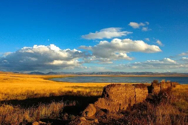 进入秋季的尕海湖,你将会看到枯黄的草原,在水与天的连接中显得格外平静温和,湖水就如同是一座池水翡翠,随着天气的千变万化却又更换着各不相同的色彩。