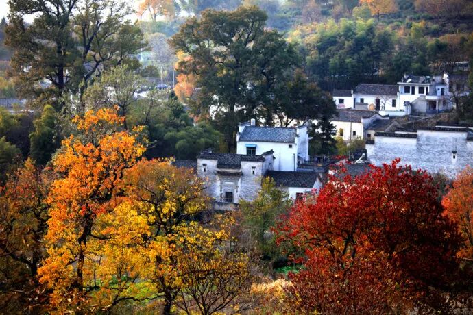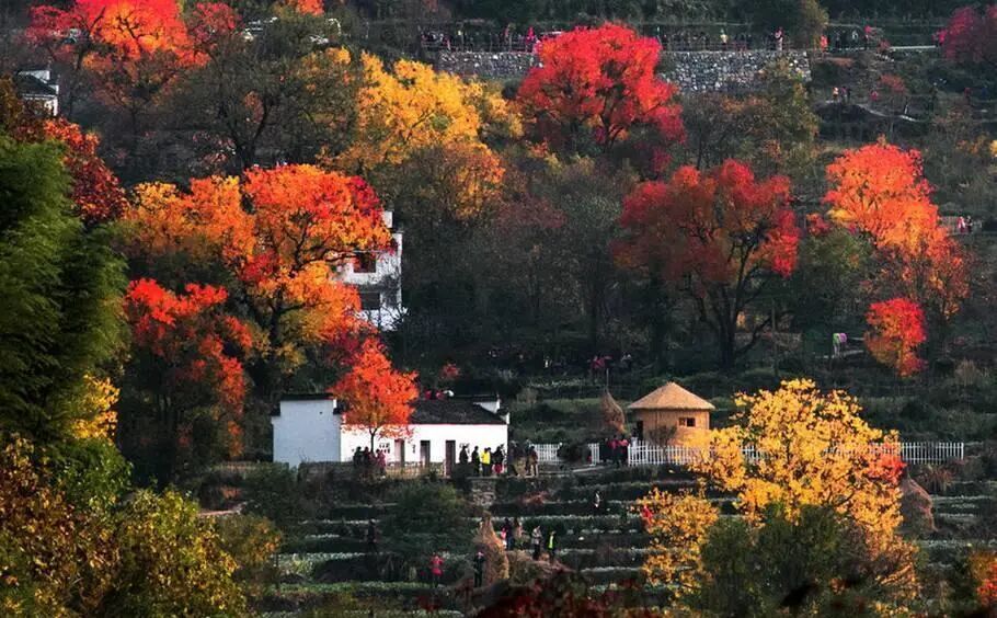 这里作为中国三大赏秋胜地,神奇的乌桕林、错落有致的田园、古色古香的山间人家、村暗桑枝合、林红柿子繁,真可谓美不胜收~