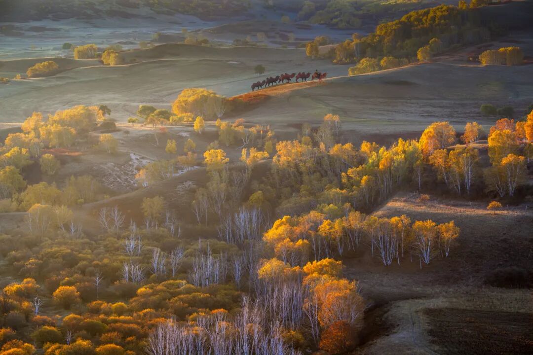 代钦塔拉是一处比香山更早欣赏到红叶的地方,不需要登高,只要漫步在草原上,就可以与漫天的枫叶为伴。