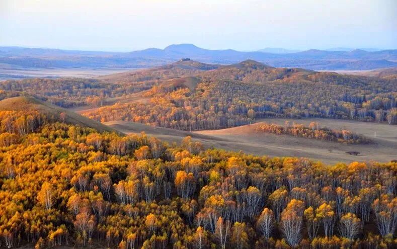 大兴安岭位于中国的最北部,这里是中国最早的秋天,大约从九月中旬开始,大兴安岭的山色便开始渐变,黄色、红色、绿色,铺满视野的五彩斑斓。