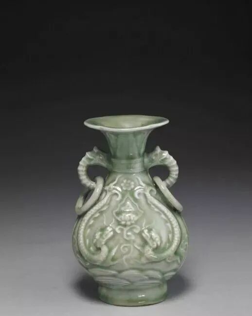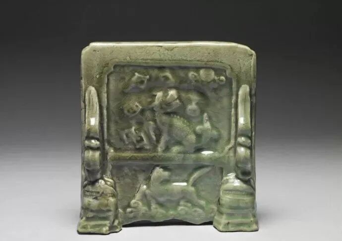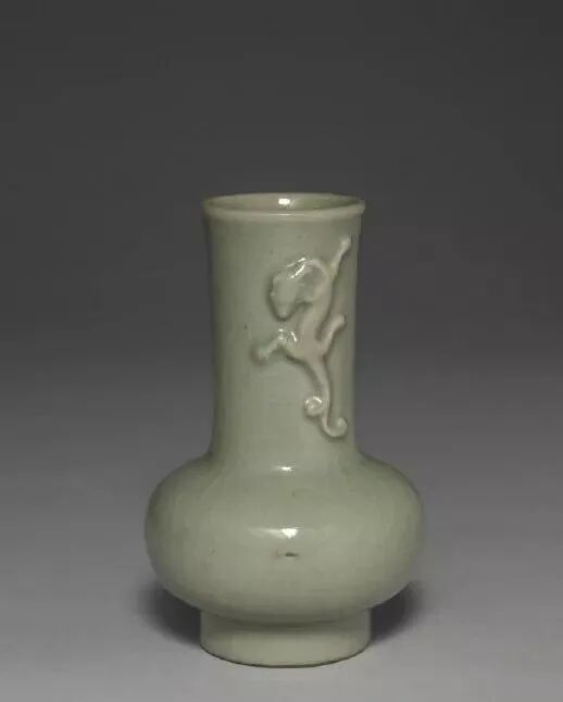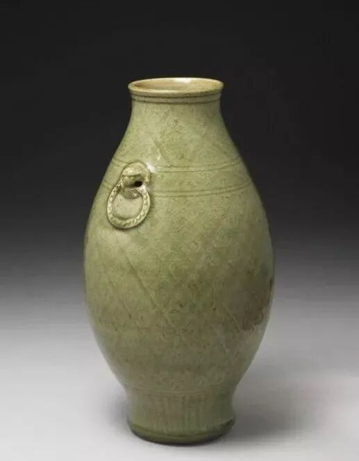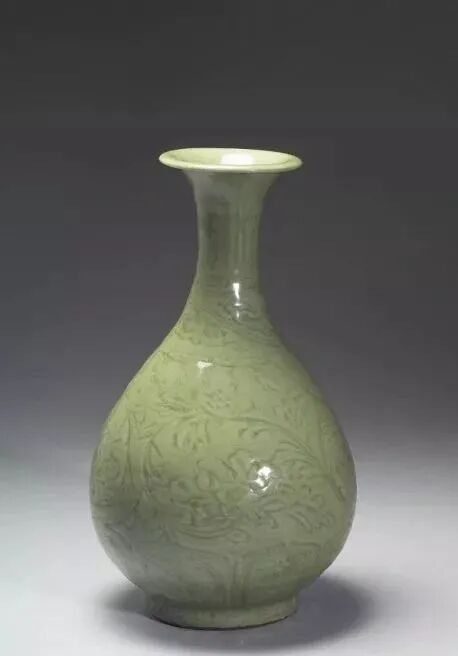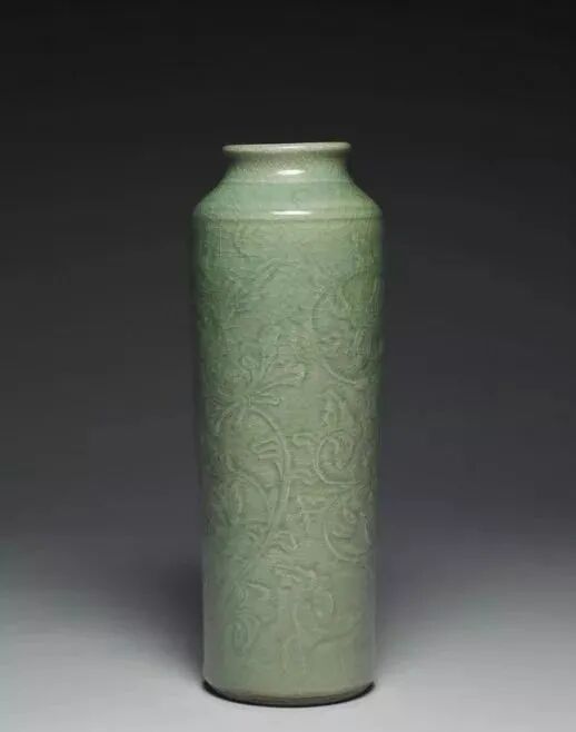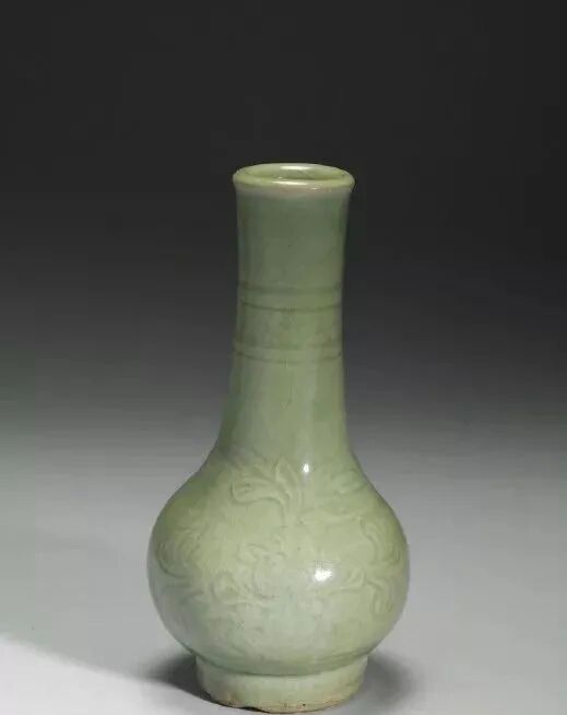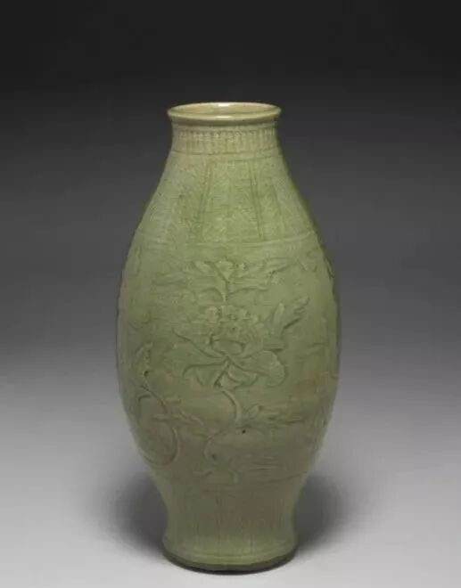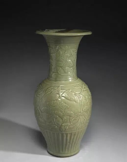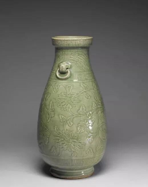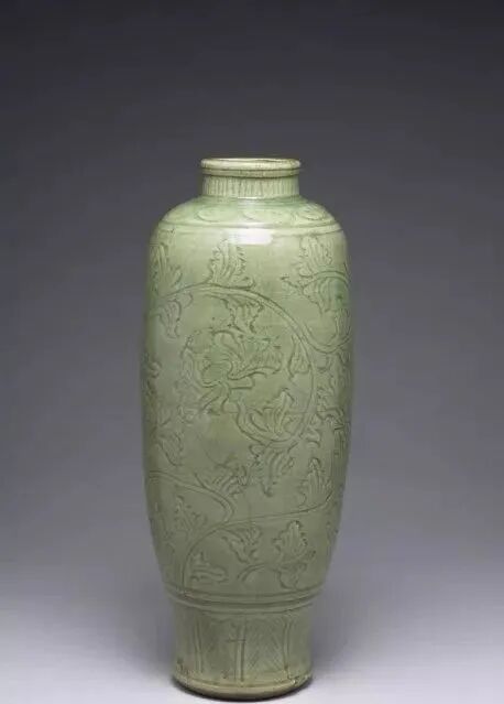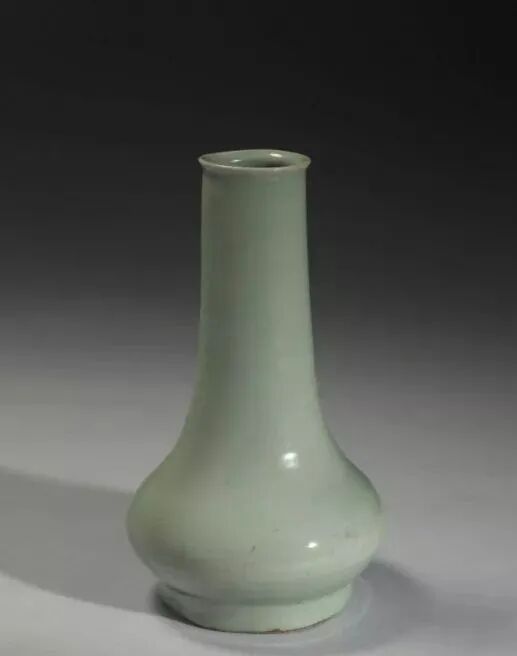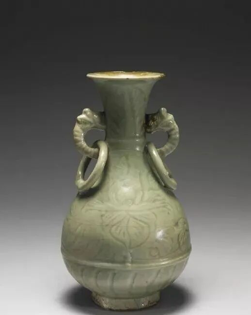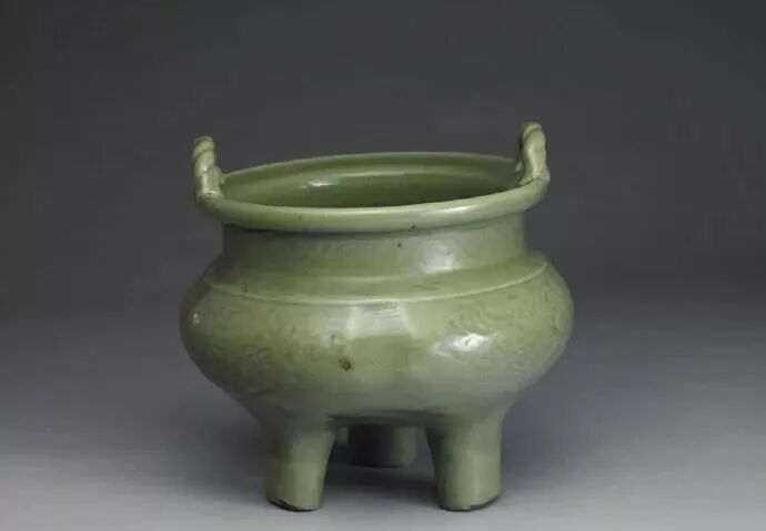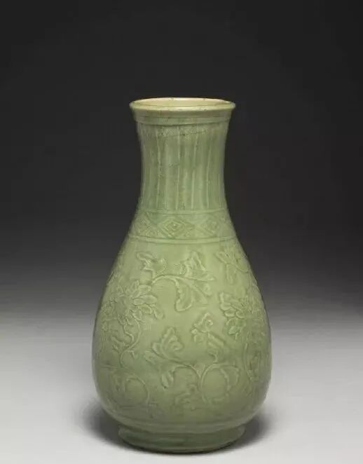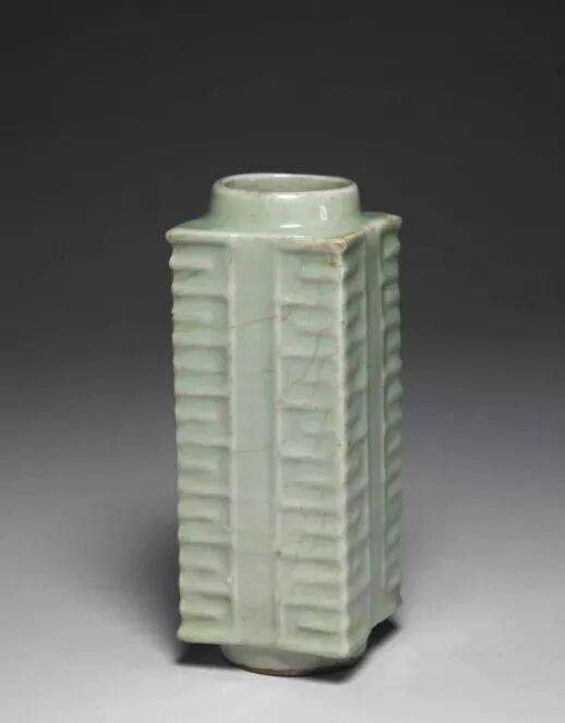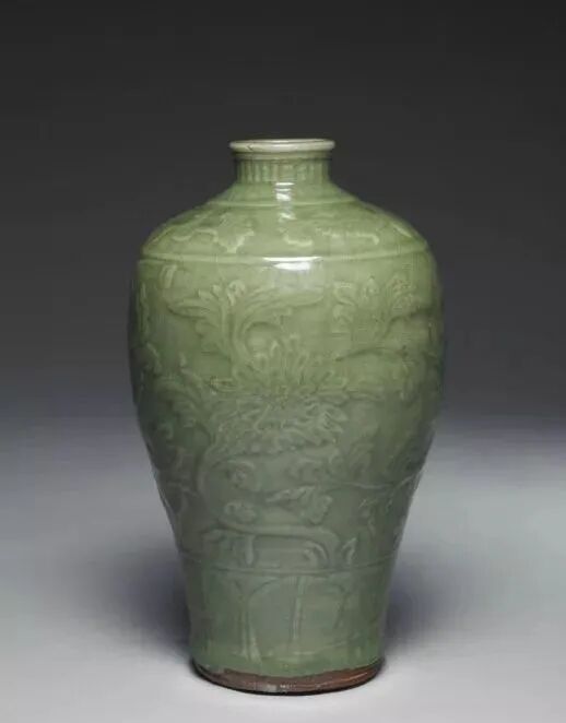 敞口,口沿呈六瓣花形并加嵌铜口,弧形深壁,小圈足,胎骨较薄,采用垫烧法烧制,圈足修饰平整,足端涂赭色护胎汁,磨损处可见灰白胎骨。内外施青色釉,釉层稍薄而匀净,口下些许淌釉痕迹。其造型端庄、釉色清丽雅致,是南宋时期龙泉窑中的佳作,相似制品可见于浙江宁波博物馆收藏,更有著名的日本东京国立博物馆龙泉窑马蝗绊葵口碗。