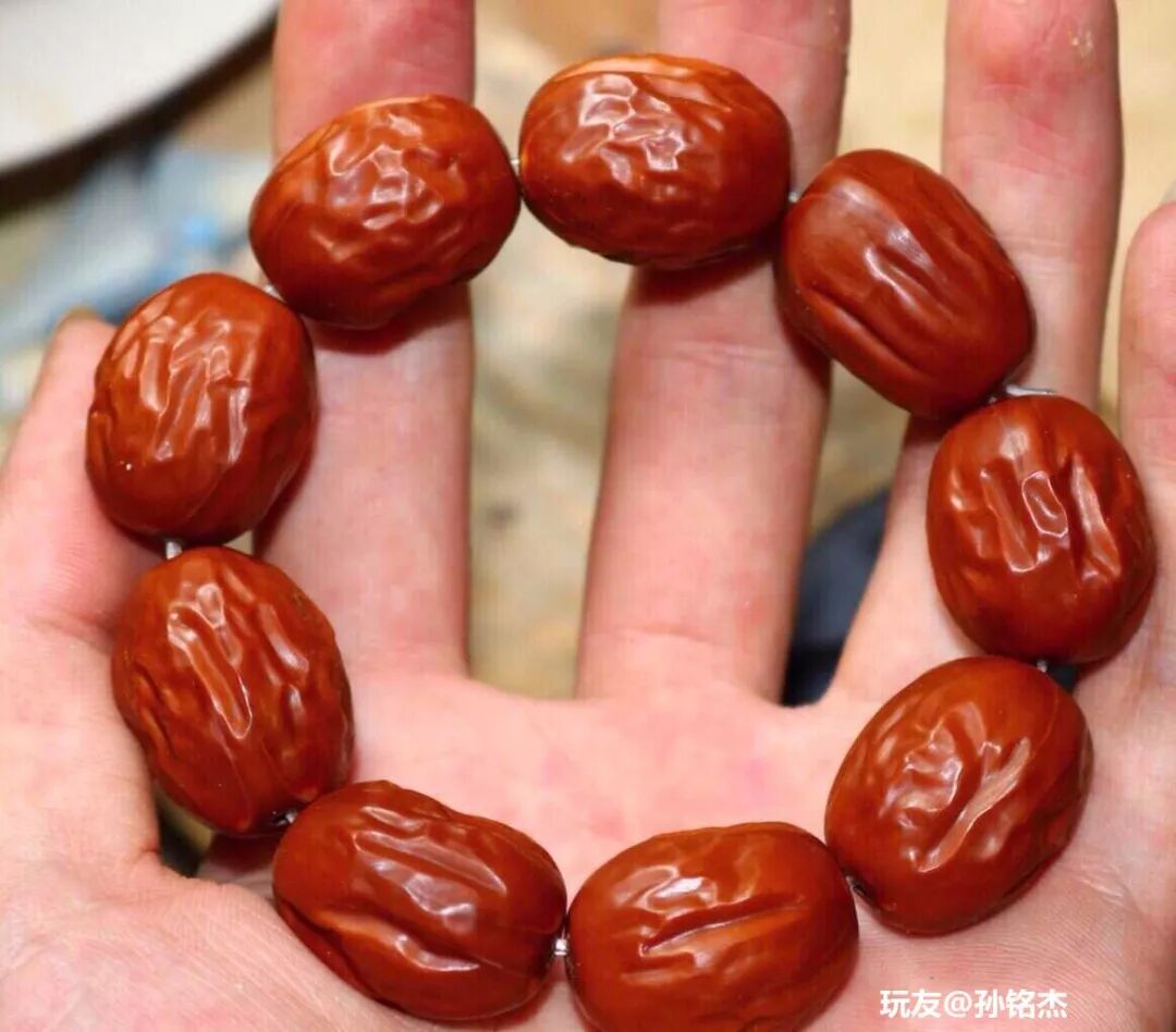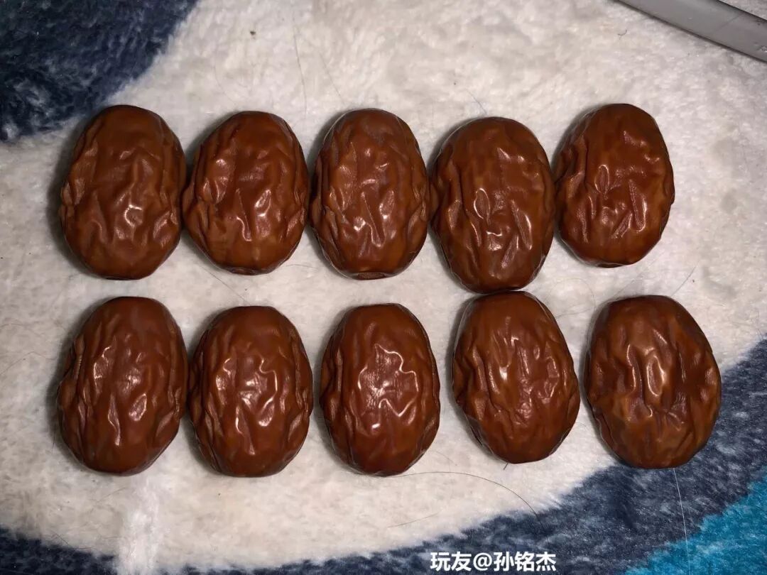 最后介绍的这种,那可厉害,几乎能达到以假乱真的地步。你看这条大枣手串,盘了三年,包浆真漂亮,你猜猜它是真的,还是假的?跟绿松石最配,还是跟枸杞最搭?除了这一条大枣手串,小编这里还有好多呢,来看看这些是真的,还是假的?其实这里面有真枣也有假枣,真枣么,就是真枣了,假枣都是橄榄核雕刻的,怎么样,厉害吧?