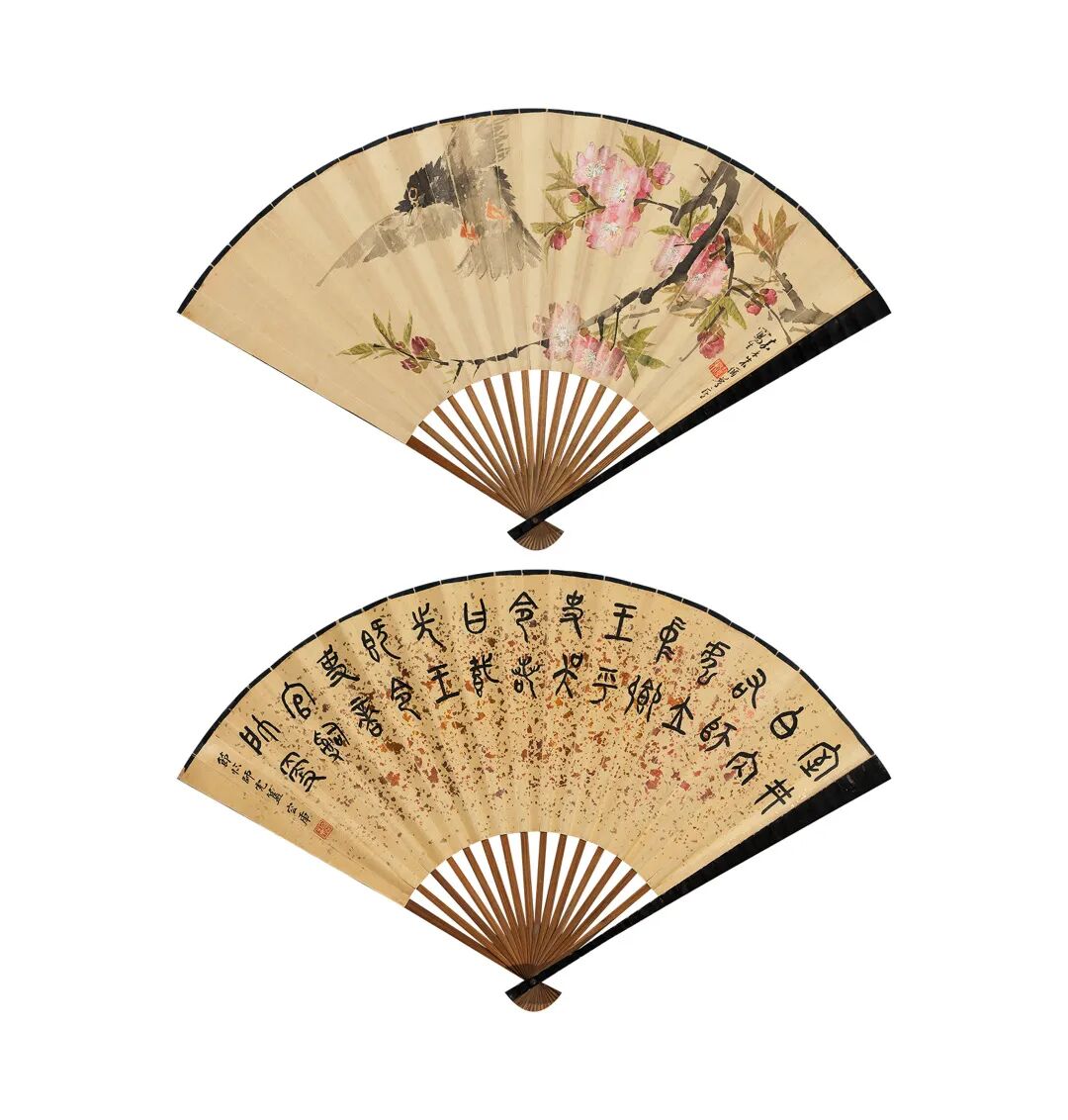 朱偁、容庚 桃花小鸟/书法