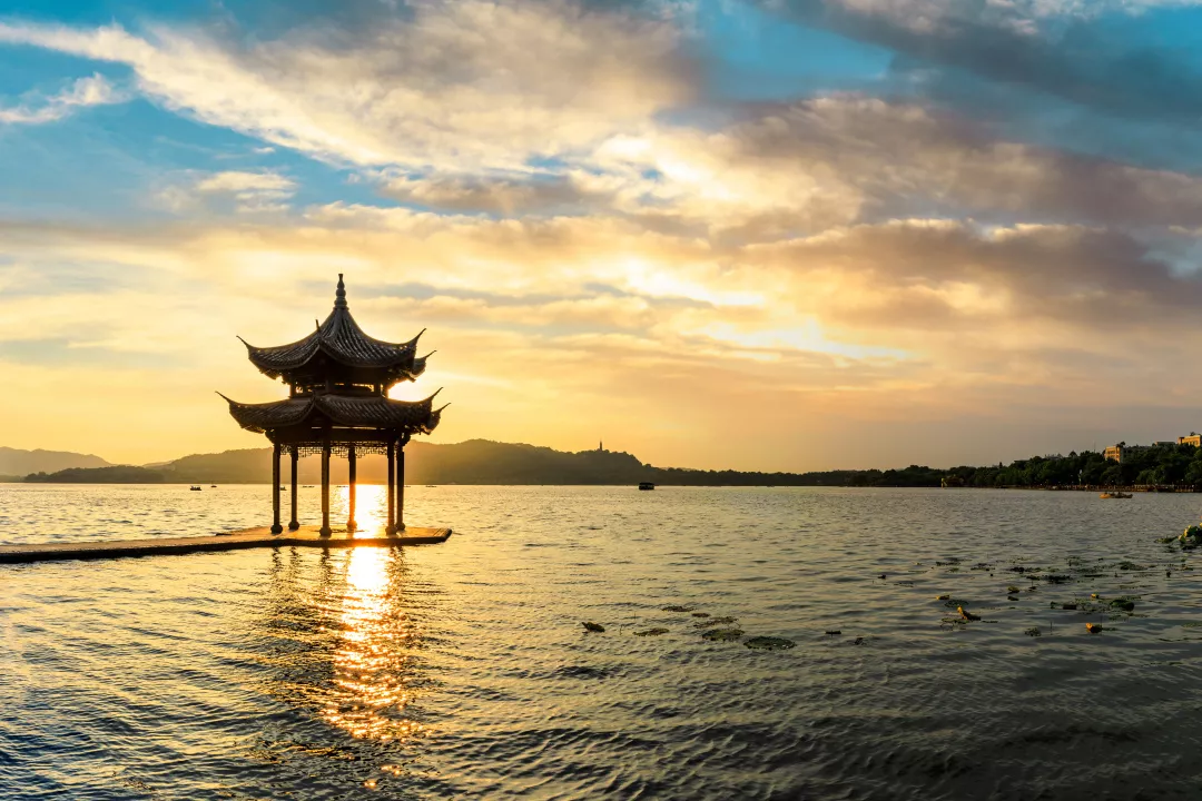 上联说的是湖心亭的地理位置,地处西湖中央,美景的焦点。细细品读,似曾相识。语出自《诗经》:“蒹葭苍苍,白露为霜。所谓伊人,在水一方。溯洄从之,道阻且长。溯游从之,宛在水中央。”