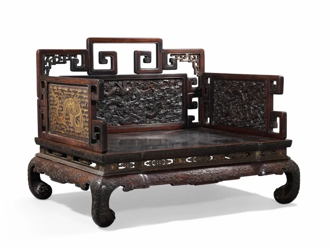 御制紫檀嵌黑漆描金硬木云龙纹宝座